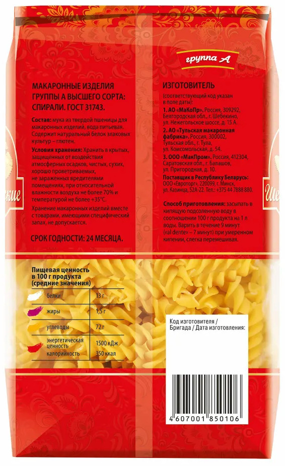 Шебекинские Макароны «№ 366 Спирали»-25% +27