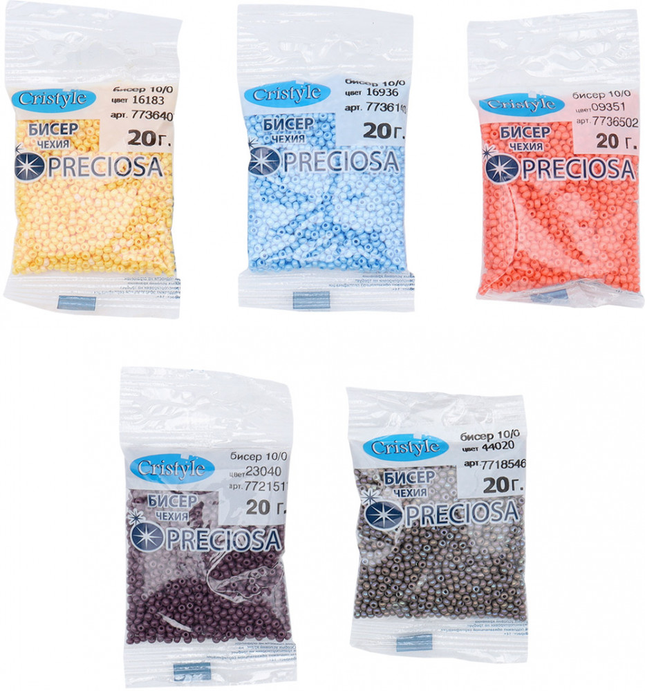 Preciosa Набор бисера для рукоделияВ данный момент этот товар отсутствует в продаже. Возможно, у нас найдется аналогичный или похожий товар здесь. Чешский бисер Preciosa — аккуратно откалиброванный и без бракованных элементов. Каждая его партия имеет одинаковый размер и цвет. Бисер круглой формы — универсальный, подходит и для вышивки, и для плетения украшений, фигурок, других поделок. Бисеру из чешского стекла Preciosa доверяют мастера со всего мира. Он надолго сохранит яркость и цвет, в том числе при контакте с кожей. Вышитые бисером изделия допускается стирать в ручном режиме при температуре до 40 градусов Цельсия. В наборе 5 цветов, по 20 г для каждого цвета. |