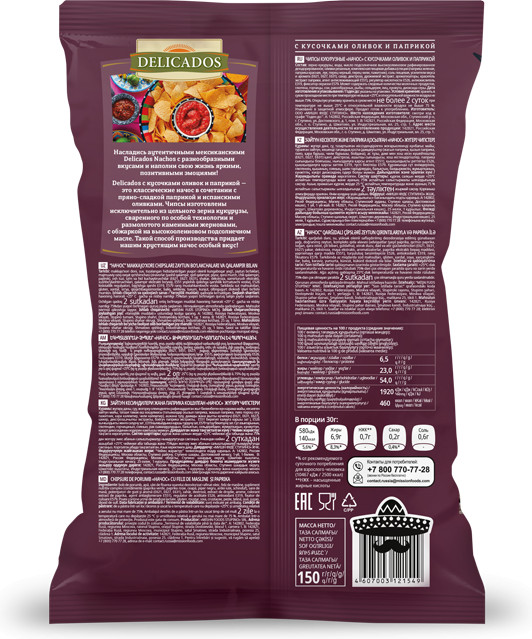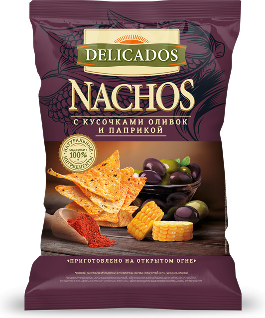 Delicados Чипсы кукурузные «С кусочками оливок и паприкой»