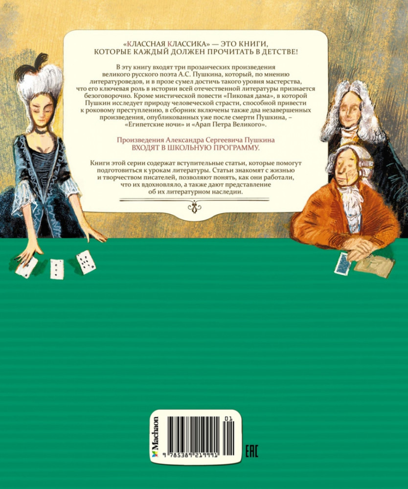 💳 Оплатить за товар можно при получении 🇰🇿 Есть бесплатная доставка по Казахстану от 1 дня 🎁 Копите бонусы с каждой покупки Серия: Классная классика В эту книгу входят три прозаических произведения великого русского поэта А. С. Пушкина, который, по мнению литературоведов, и в прозе сумел достичь такого уровня мастерства, что его ключевая роль в истории всей отечественной литературы признается безоговорочно. Кроме мистической повести «Пиковая дама», в которой Пушкин исследует природу человеческой страсти, способной привести к роковому преступлению, в сборник включены также два незавершенных произведения, опубликованных уже после смерти Пушкина, — «Египетские ночи» и «Арап Петра Великого». |