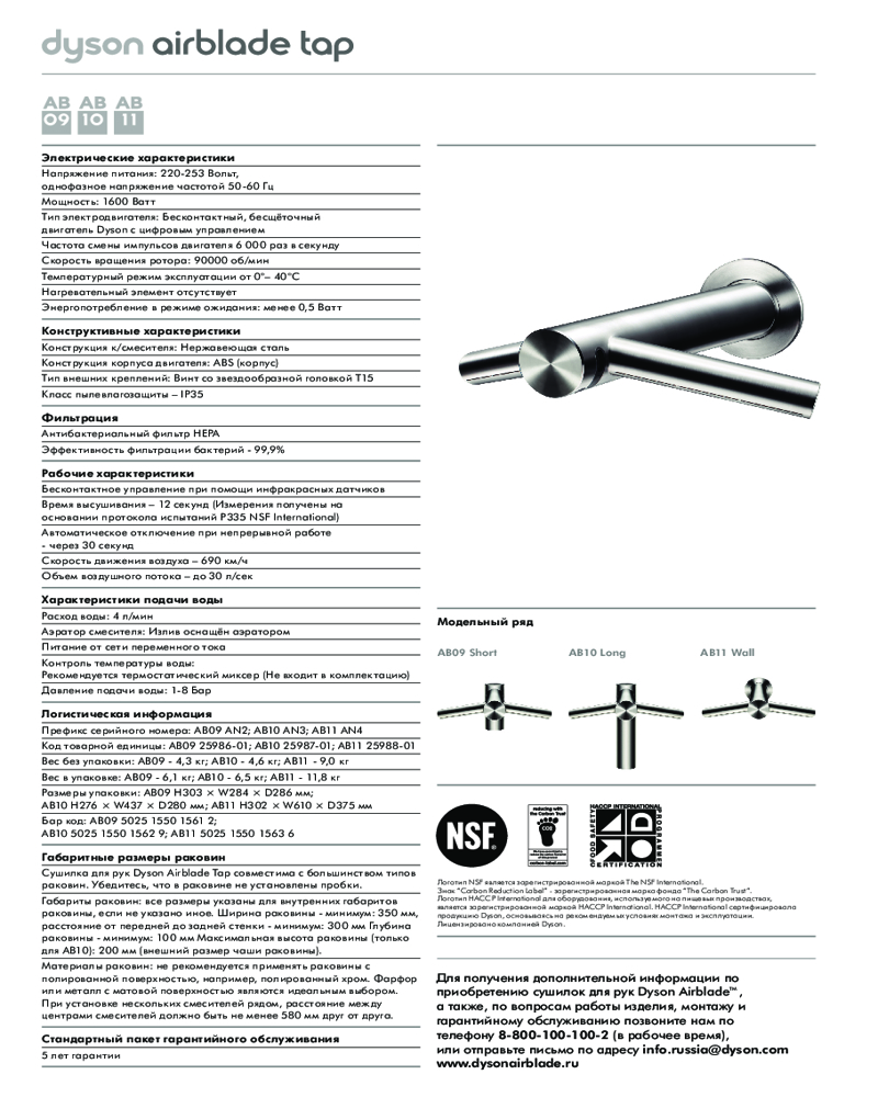 Серия: Airblade Сушилка для рук Dyson Airblade Wash+Dry сушит руки за 14 секунд. Таким образом, пользователи проводят меньше времени в ваших уборных комнатах, что упрощает управление рабочим временем. До 98% меньше отходов и мусора, чем при использовании одноразовых бумажных полотенец и до 82% меньше выбросов углекислого газа CO₂.¹ Создание более экологичной среды в уборных комнатах и во всем мире.