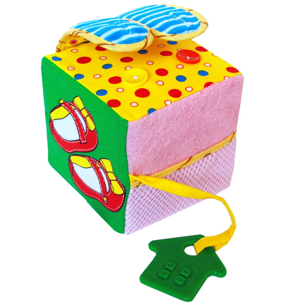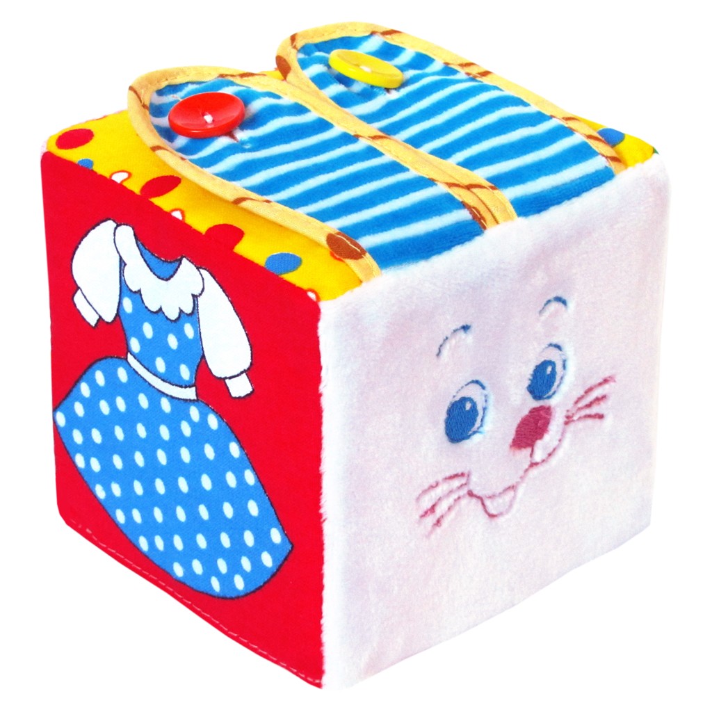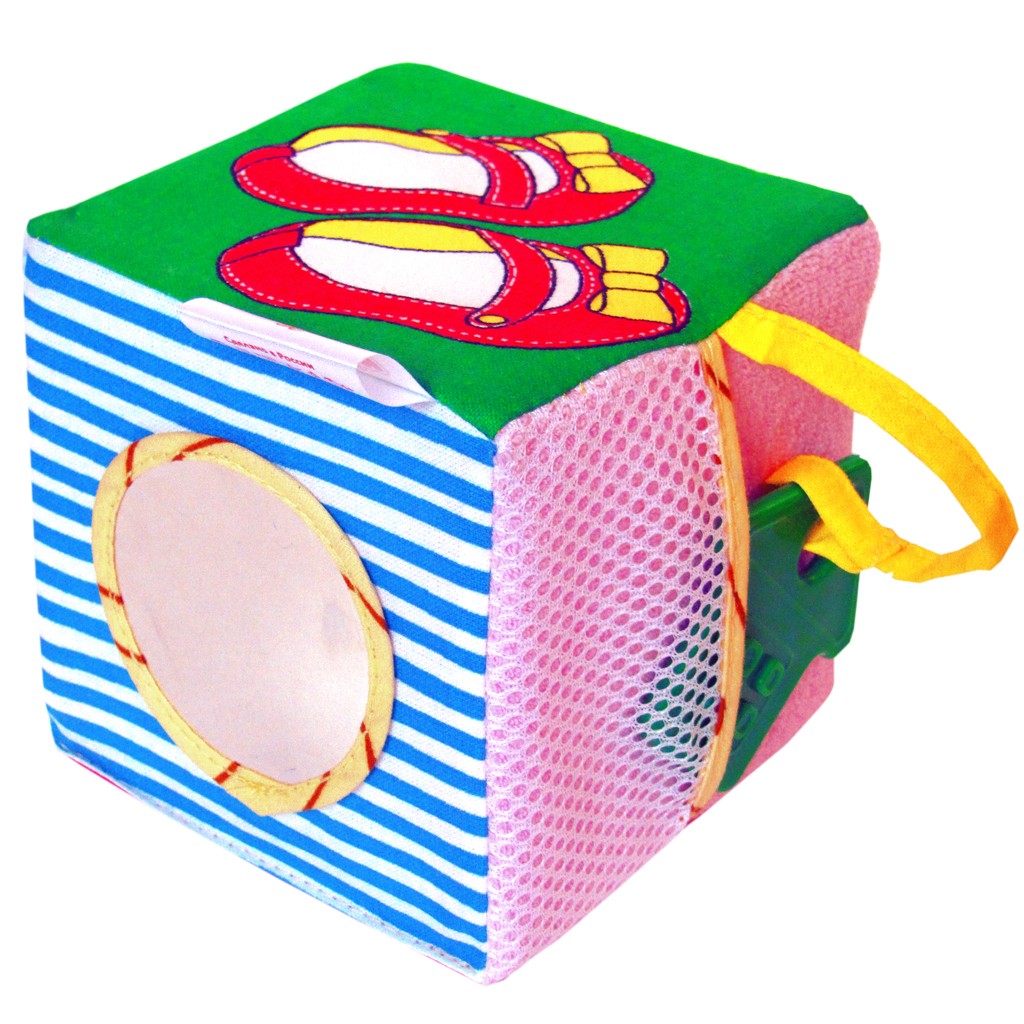 Пришел кубик к нам как для мальчика картинки с машинкой и самолетом. У меня 7 месячная девочка. Кубик из ситца с вставками из плюша или велюра. Ушки шуршат. Непонятно зачем пуговицы пришиты отрезали сразу для детской безопасности, потому что ребенок все тянет в рот. Бесконечно приходится стирать, потому как сделан не из протирающегося материала. От стирки зеркальце трескается. Если честно кубик не о чем. Не особо заинтересовал ребенка