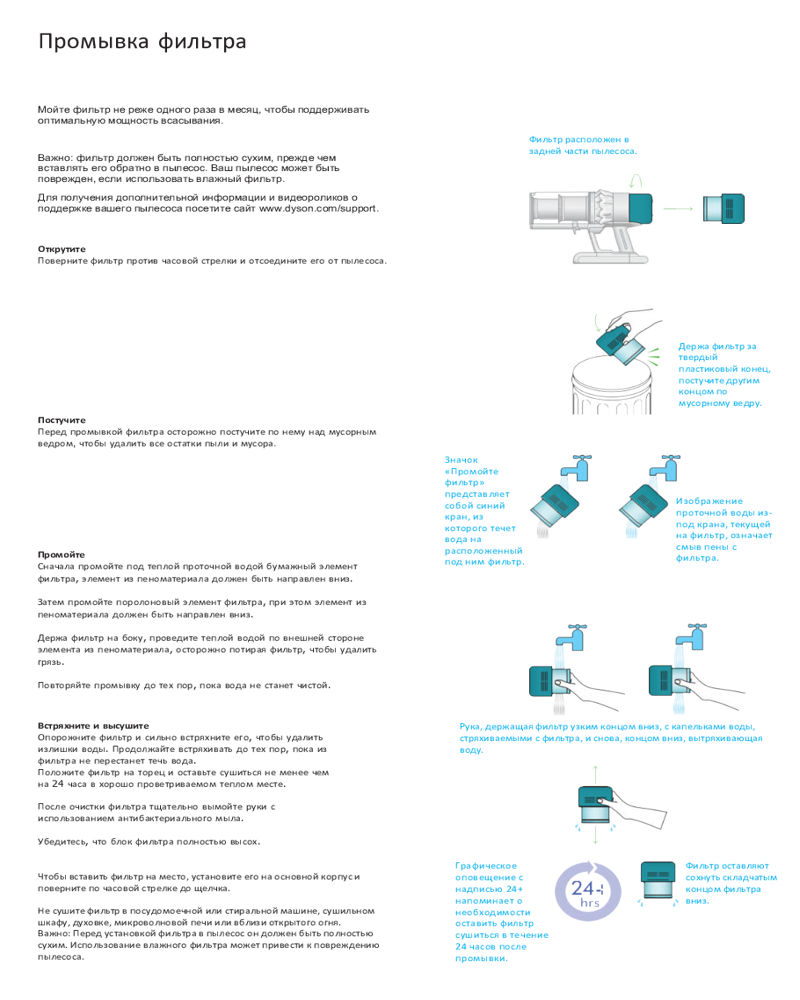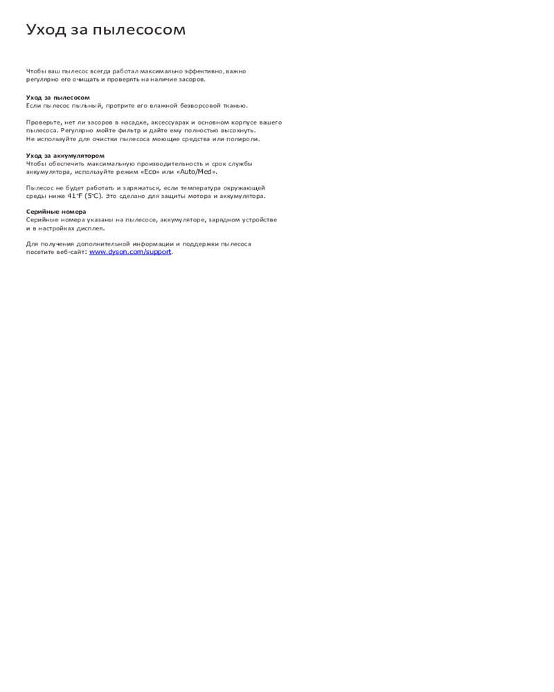 Усовершенствованный 10-элементный аккумулятор обеспечивает самое продолжительное время работы беспроводного пылесоса Dyson.⁵ Режим ожидания и усовершенствованный химический состав аккумулятора максимально увеличивают срок его службы. Благодаря технологии Radial Root Cyclone 14 спиральных циклонов улавливают пыль и мусор из воздушного потока без потери всасывания. Поддержание максимальной мощности всасывания. Режим «Auto» автоматически регулирует мощность всасывания для разных типов напольного покрытия, чтобы максимально продлить срок службы аккумулятора.⁵ Режим «Boost» предназначен для более интенсивной точечной уборки, а режим «Eco» — для более длительной уборки на всех типах полов.