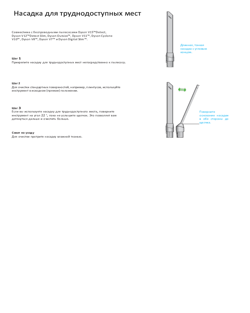 Универсальная беспроводная технология Dyson — для уборки всех типов напольных покрытий, труднодоступных мест, очистки матрасов, диванов и лестниц. Не тратьте время на переключение на портативный пылесос. Встроенная щелевая насадка для удаления пыли всегда под рукой. Интеллектуально адаптирует мощность всасывания к разным типам пола.⁷ Лопасти для удаления волос автоматически распутывают волосы со щетки во время уборки.