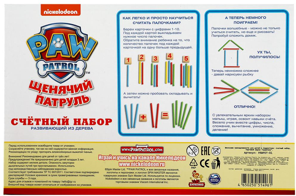 Буратино Счётный наборВ данный момент этот товар отсутствует в продаже. Возможно, у нас найдется аналогичный или похожий товар здесь. Серия: Щенячий Патруль Деревянная игрушка «Щенячий Патруль» станет отличным развивающим подарком для маленьких поклонников мультсериала про отважных щенков-спасателей. Благодаря входящим в состав данного набора деталям, дошкольник сможет в игровой форме освоить начальные навыки счёта и потренировать в дальнейшем свои умения в области математики, а также научиться составлять и решать простые примеры на сложение, вычитание, деление и умножение. |