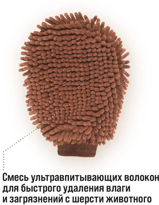 • микроволокнистая плюшевая ткань позволяет массажными движениями высушить вашего питомца;