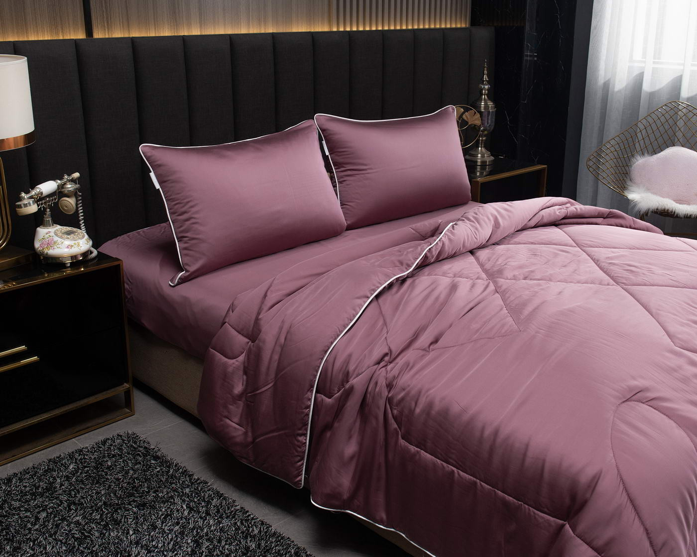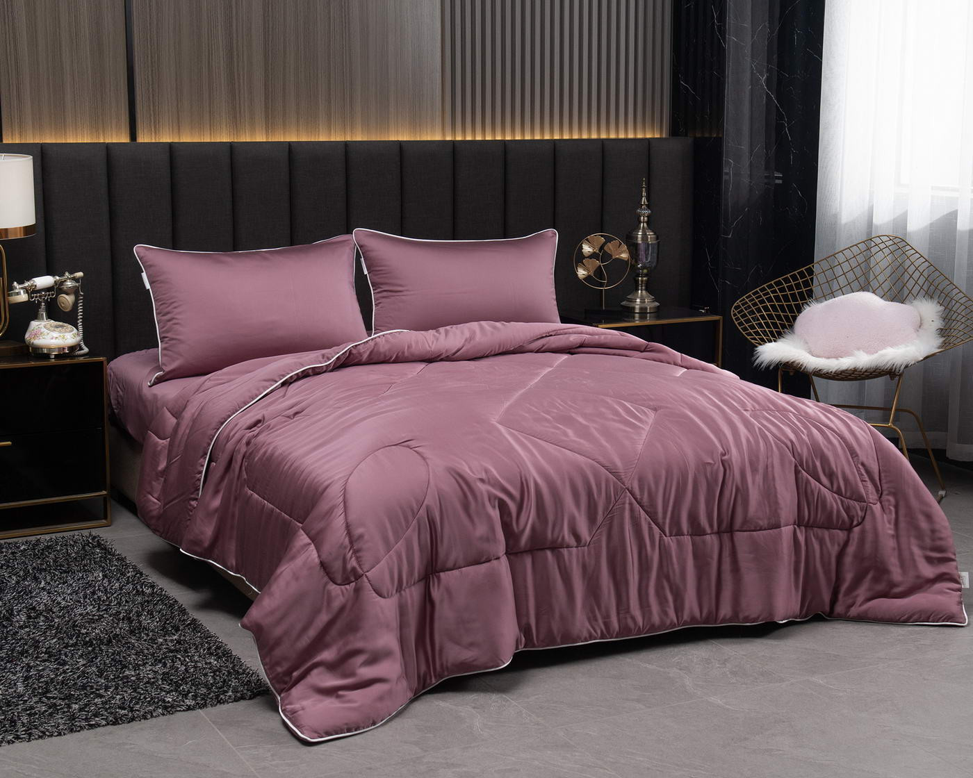Тенсел — это натуральная ткань из эвкалиптового волокна. На ощупь тенсел напоминает шелк — он такой же легкий и гладкий. Постельное бельё из такой ткани обладает хорошей терморегуляцией, поэтому его можно использовать в любое время года — не будет жарко или холодно. Тенсел пользуется большой популярностью во всем мире. Комплект постельного белья оформлен контрастным кантом на одеяле и наволочках, застегивается на молнию. Одеяло декорировано красивой строчкой, что добавляет изысканности. Комплекты с одеялом Рафаэль не только красивые, но и прочные, они выдерживают многочисленные стирки, не теряя при этом своей формы и ярких красок. При правильном уходе они прослужат долгие годы, не потеряв форму и цвет.