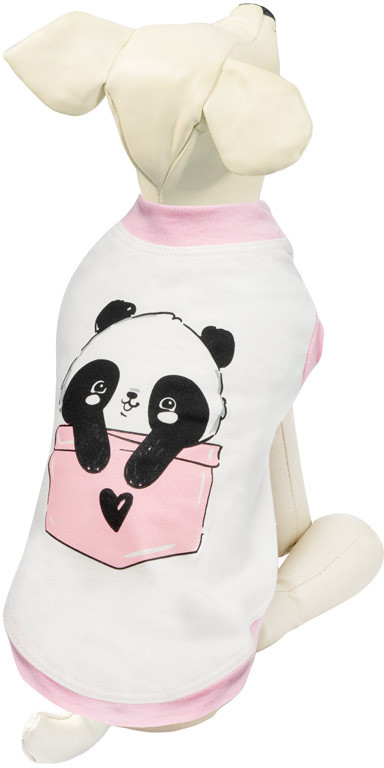 Стильная майка для активной девочки. Майка выполнена из хлопка белого цвета и украшена на спинке очаровательным принтом. Легкая майка свободно ложится на тело, горловина и вырезы для лапок отделаны широким мягким кантом, который обеспечивает комфорт при ходьбе и беге, не цепляет шерсть и не сбивает ее в комки. Удобная и комфортная, эта майка разнообразит гардероб вашей любимицы и станет прекрасным аксессуаром на каждый день.