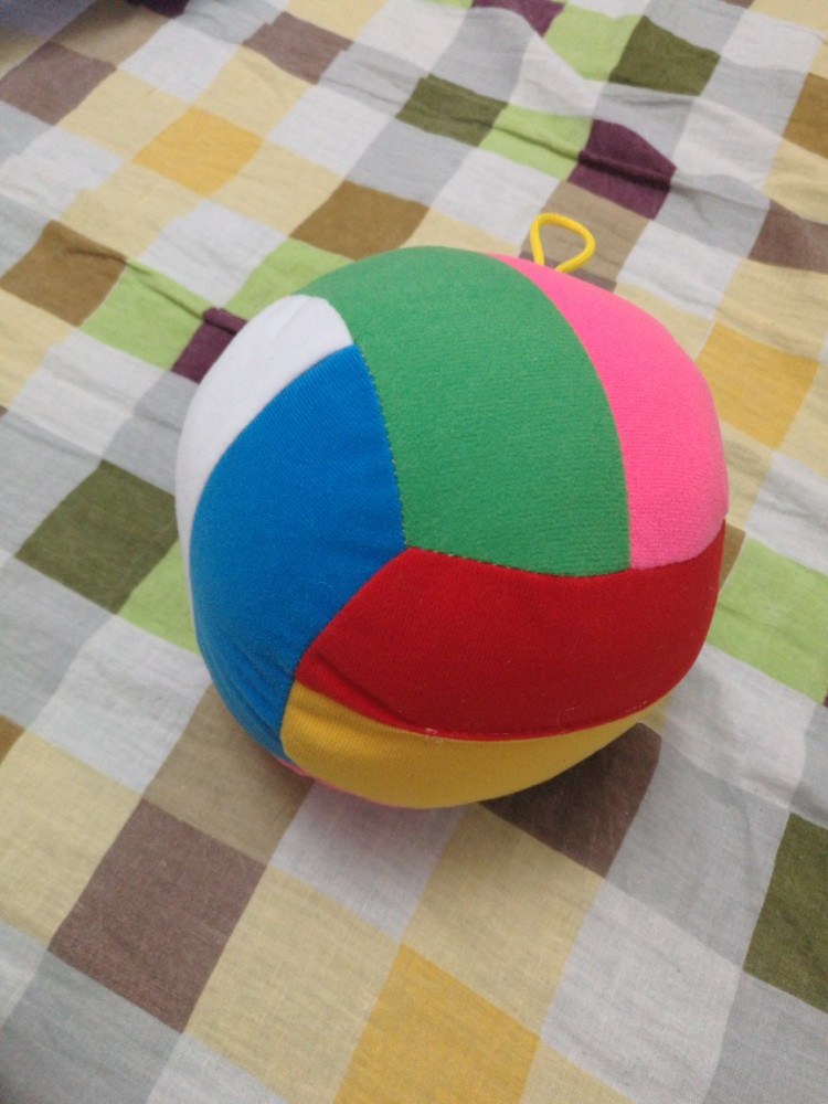 Мячик хороший, особенно для совсем маленьких деток. Т.к. он из ткани, то, во-первых, малыш вряд ли им себе навредит, а во-вторых, даже совсем маленький ребенок может его схватить и удержать, в отличие от любого резинового мяча.