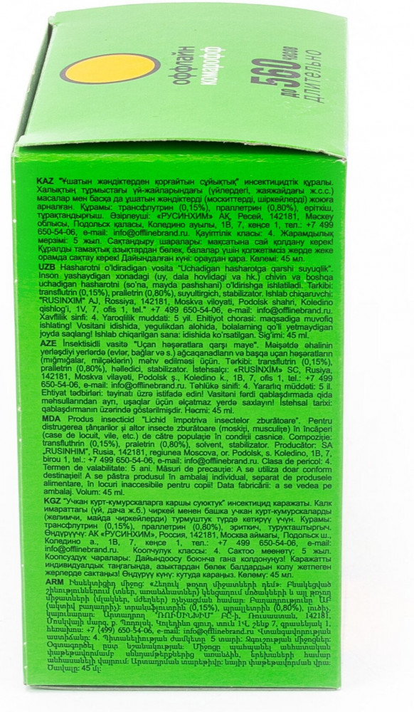 💳 Оплатить за товар можно при получении 🇰🇿 Есть бесплатная доставка по Казахстану 🎁 Копите бонусы с каждой покупки Незаменим для бережной защиты помещений от комаров, москитов, мошек и других летающих насекомых в течении 70 ночей, даже при открытых окнах! Средство без запаха во флаконе из прозрачного, небьющегося материала. |