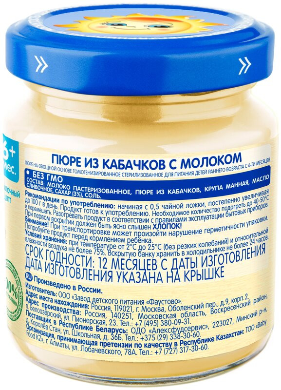 Бабушкино Лукошко Пюре детское «Кабачок с молоком»