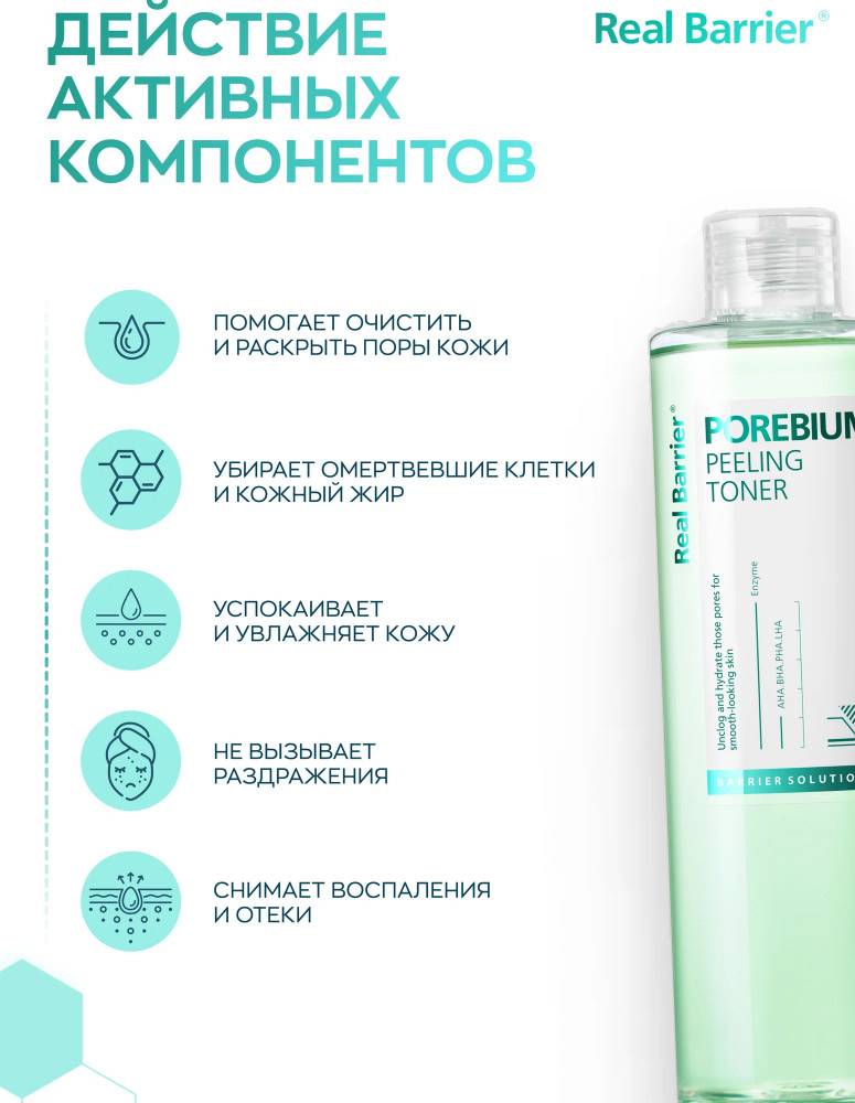 | Real Barrier Пилинг-тонер для лица энзимный для борьбы с темными точками Pore Bium Peeling Toner