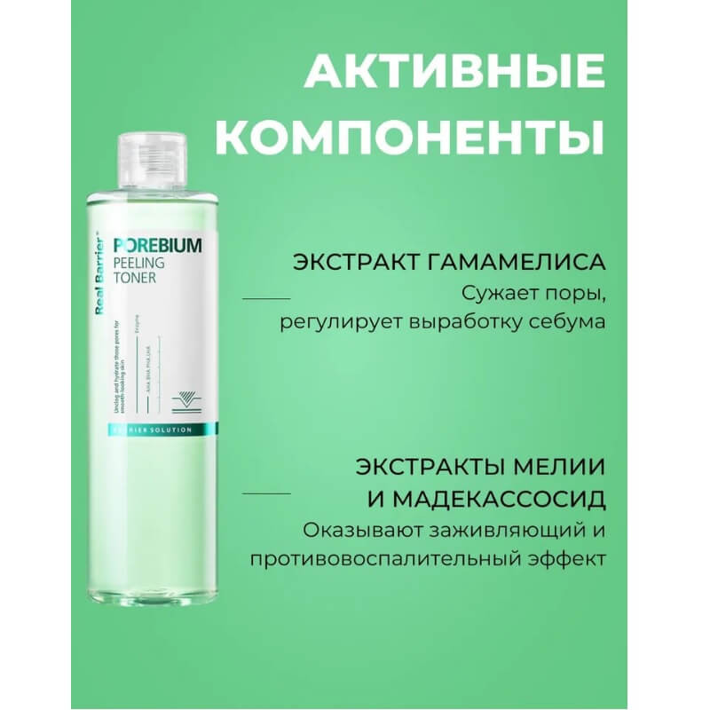 В данный момент этот товар отсутствует в продаже. Возможно, у нас найдется аналогичный или похожий товар здесь. Энзимный пилинг-тоник для борьбы с чёрными точками Real Barrier Porebium Peeling Toner оказывает мощнейшее отшелушивающее действие, удаляет остатки загрязнений и макияжа, омертвевшие клетки и излишки кожного сала. Эффективно регулирует жирность кожи в течение дня и нормализует работу сальных желёз.