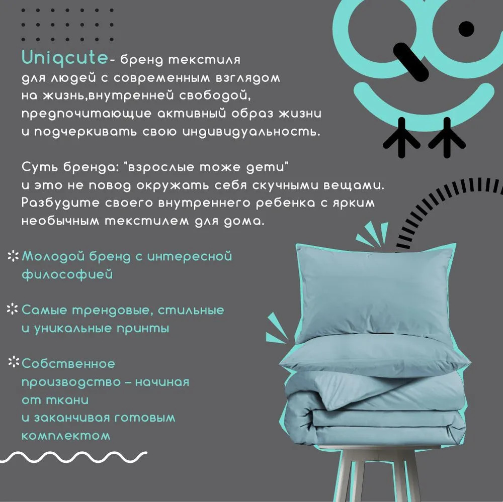 Uniqcute Комплект постельного белья «Аквамарин»-30% +394 хлопок аккуратные швы качественный пошив цвет фото размер соответствует