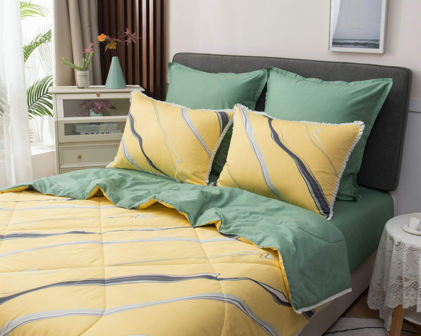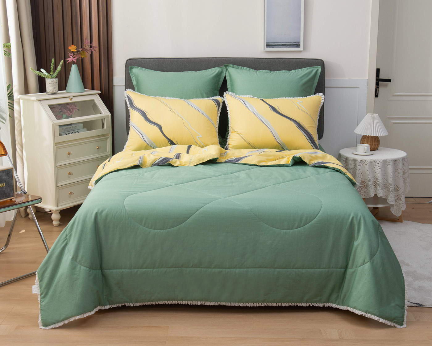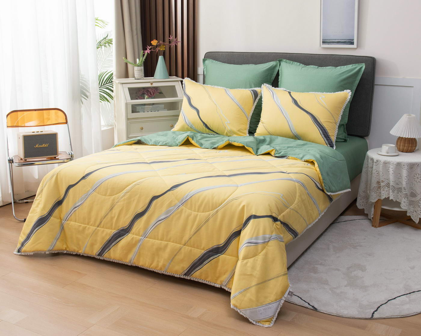 В комплекты комфортеров с одеялом «Бернадетт» входят наволочки, простыня и легкое всесезонное одеяло. Оцените это современное и очень удобное решение, которое идеально подходит тем, кто не любит возиться с пододеяльниками. Само одеяло тонкое и легкое, но под ним вам не будет холодно зимой или жарко летом. Такое одеяло можно использовать в любое время года, 100% хлопок гарантирует качественный сон, т.к. натуральная ткань не вызывает аллергии, хорошо впитывает влагу и позволяет коже дышать.
