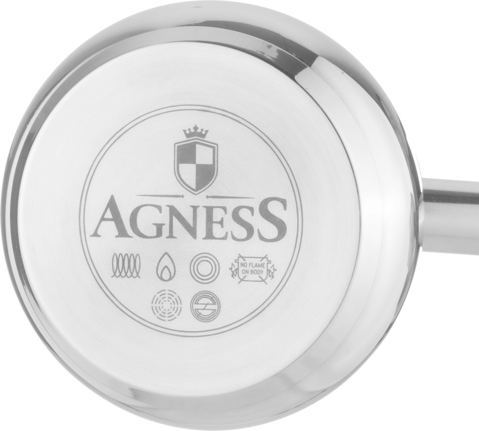 Самый вкусный кофе — кофе приготовленный в турке! Бренд «Agness» представляет турки для кофе. Турка выполнена из высококачественной пищевой стали. Не нагревающаяся ручка — можно не использовать прихватку. Носик для слива — удобно разливать напиток по чашкам. Турку можно использовать на индукционной плите при условии, если размер конфорки не превышает (или превышает ненамного) размер дна турки.
