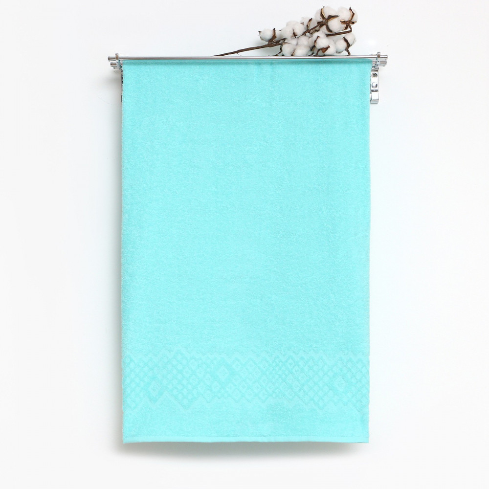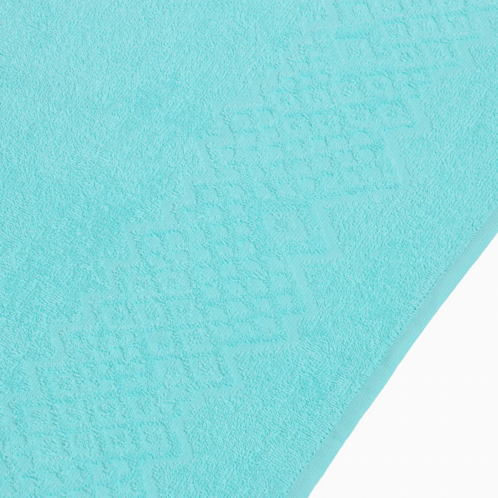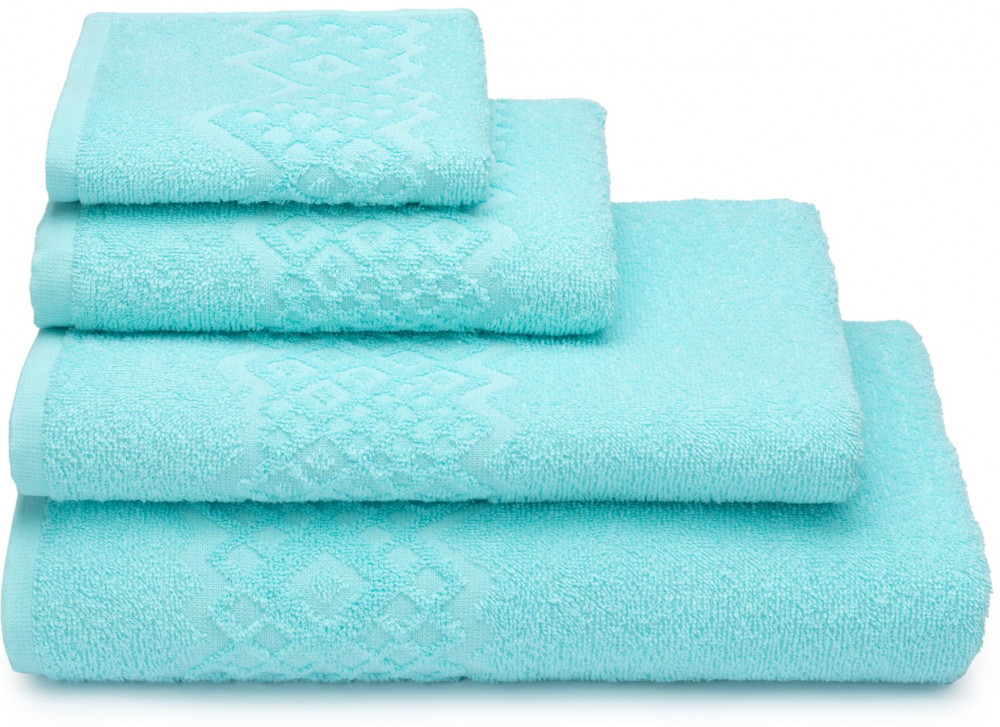 Махровое гладкокрашеное полотенце выполнено из 100% хлопка. Замысловатый стилизованный узор передан рельефными геометрическими фигурами. Сочетание разных размеров ромбов создает визуальный эффект 3D.