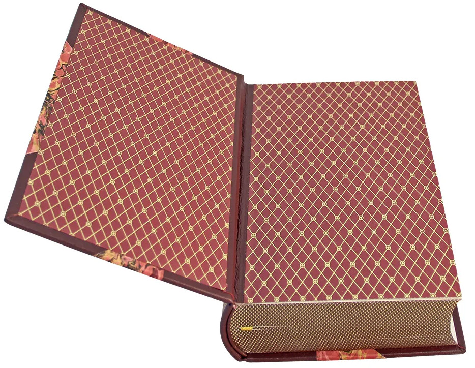 Европейский составной переплёт ручной работы из натуральной кожи и переплётного материала муар. Форзац из дизайнерской бумаги. 4 бинта на корешке, ручной обработки. Каптал из натуральной кожи. Обрез блока — золото с торшонированием. Тиснение золотой фольгой. Ляссе. |