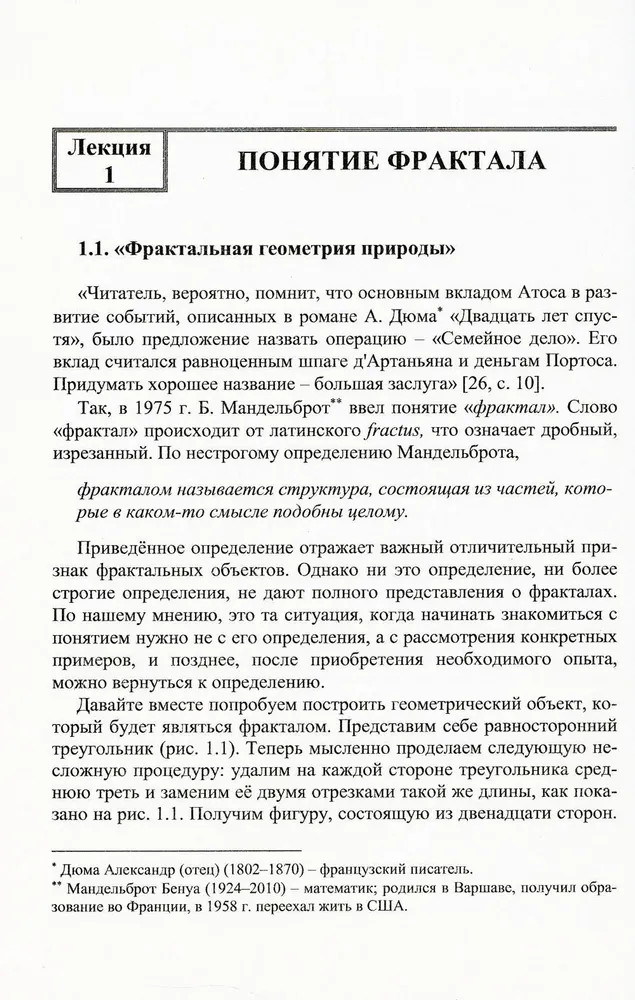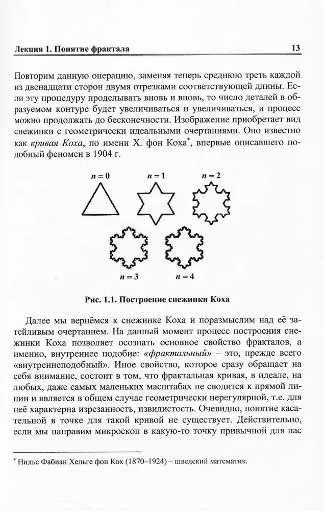 Дюжина лекций о фракталах. От объекта восхищения к инструменту познанияГринченко Виктор Тимофеевич, Мацыпура Владимир Тимофеевич , Снарский Андрей Александрович В данный момент этот товар отсутствует в продаже. Возможно, у нас найдется аналогичный или похожий товар здесь. Серия: Синергетика: от прошлого к будущему Фрактальные структуры являются не просто математической абстракцией, они присущи многим явлениям в природе. Такое понимание стало важным достижением науки второй половины XX столетия. Понятие фрактала выросло в новую математическую модель, дающую единое описание свойств, присущих многим природным явлениям. Этим объясняется современная популярность фрактального подхода к анализу различных объектов. |