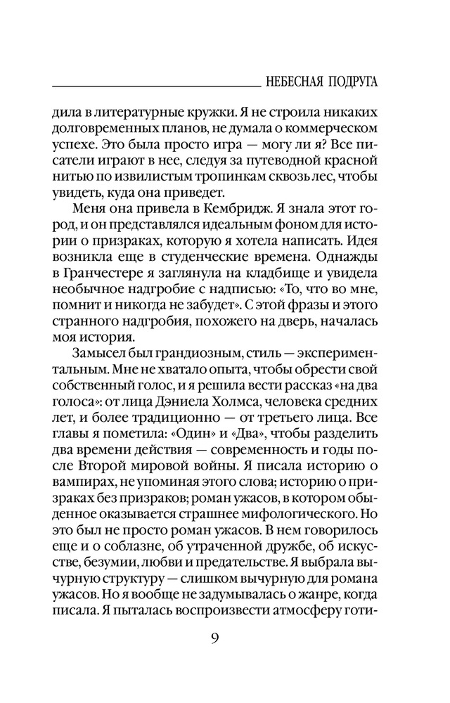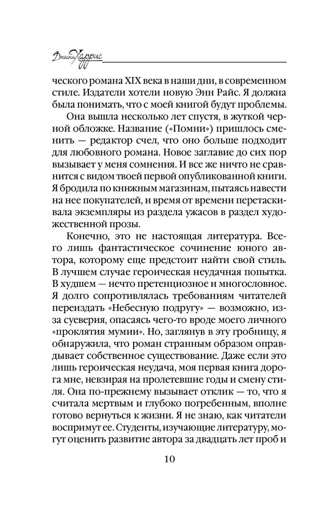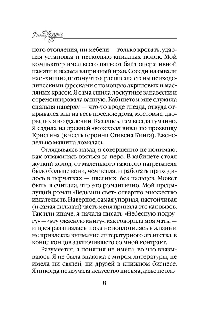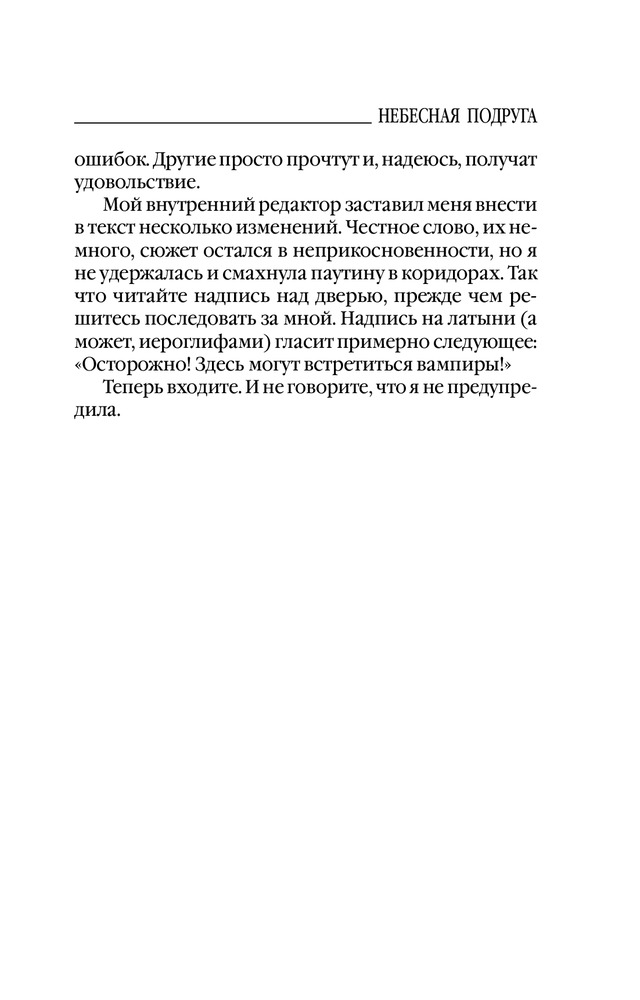Где-то посередине книги я начала задаваться вопросом "Зачем вообще я это читаю?", и чем дальше, тем вопрос этот всплывал чаще. Пожалуй, это единственная на моей памяти книга, где раздражали абсолютно все герои: и положительные, и отрицательные, и главные, и второстепенные. Нелогичность их поступков просто зашкаливала. Если большинство из них можно списать на "чары Розмари" (ее чары - отдельная тема для обсуждения), то как объяснить поведение Элис? Когда ее бывший, в которого она все еще влюблена, звонит и просит приютить свою нынешнюю возлюбленную (Джинни, она же Розмари), беспрестанно при этом повторяя, как безумно ее любит и как на самом деле не любил саму Элис, что вы думаете делает последняя? Конечно, соглашается! Ах да! Забыла еще одну важную деталь: он сообщает, что Джинни только что вышла из клиники для душевнобольных и предупреждает Элис, что "она очень уязвима сейчас, поэтому ты должна ее холить и лелеять, пылинки с нее сдувать и вообще слова против не говорить" Как вам? По-моему, Элис - просто уникальная девушка. Любая другая послала бы бывшего куда подальше, а она легко соглашается. Далее книга просто напичкана всякими клише. Вампиры обязаны выглядеть как готы, носить футболки с надписью "смерть" и прочие готические атрибуты. Розмари - сгусток коварства и жестокости, но при этом ангельски красива и подчиняет своей воле мужчин одним взмахом ресниц. При этом ее методы воздействия никак не раскрываются автором, она лишь строит из себя воплощение невинности, скромно опускает глазки и молчит-молчит-молчит, тем самым разбивая мужские сердца. Элис как одержимая ночами бегает за Джинни тенью, из раза в раз становится свидетелем сомнительных действ, а утром списывает все на разыгравшееся воображение. Конец книги напоминает бред сумасшедшего. Так как я обожаю более поздние книги Харрис, такие как "Джентльмены и игроки", "Шоколад", а "Небесная подруга" - это всего лишь проба пера, общее мнение об авторе из-за нее у меня не поменялось. К тому же книга написана очень хорошим языком, а это для меня уже огромный плюс. Но если меня спросят, стоит ли читать сие произведение, ответ будет однозначным - нет.