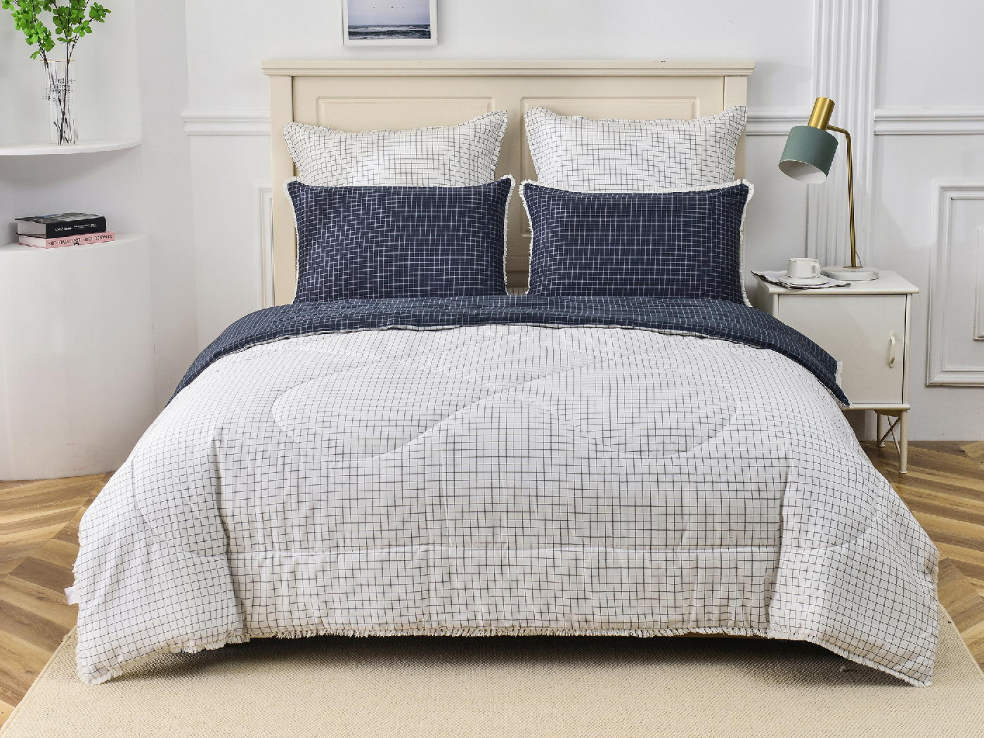 В комплекты постельного белья с одеялом Бернадетт входят: наволочки, простыня и легкое всесезонное одеяло. Оцените это современное и очень удобное решение, которое идеально подходит тем, кто не любит возиться с пододеяльниками. Само одеяло тонкое и легкое, но под ним вам не будет холодно зимой или жарко летом. Такое одеяло можно использовать в любое время года, 100% хлопок гарантирует качественный сон, т.к. натуральная ткань не вызывает аллергии, хорошо впитывает влагу и позволяет коже дышать. Прочная и красивая ткань сатин, из которого выполнен комплект, мягкая и гладкая на ощупь, при этом вещи не теряют форму. Набор с одеялом прослужит вам достаточно долго без потери своего качества, а рисунок не потускнеет даже после стирок. Комплект легко стирается в обычной машине и также легко гладится.