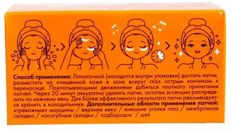 Патчи использую каждое утро.Они моментально выравнивают мелкие морщинки, питают и увлажняют эпидермис, создают лифтинг – эффект, омолаживают кожу.