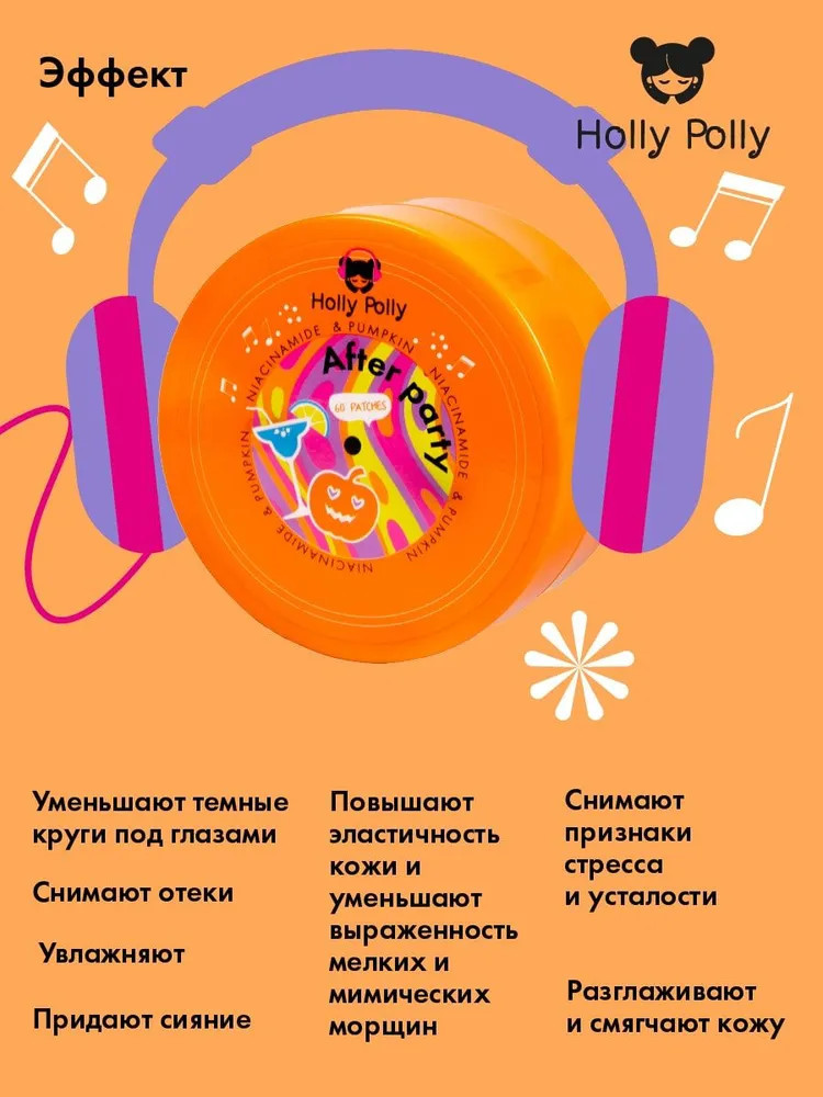 Holly Polly Патчи для глаз гидрогелевые с ниацинамидом и экстрактом тыквы «After Party»