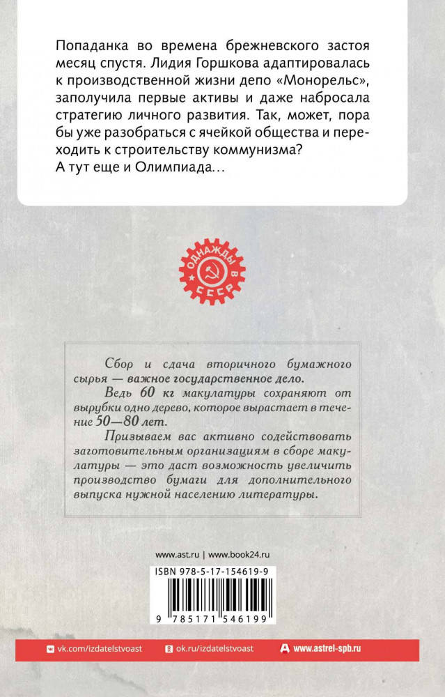 Серия: Однажды в СССР Попаданка во времена брежневского застоя месяц спустя. Лидия Горшкова адаптировалась к производственной жизни депо «Монорельс», заполучила первые активы и даже набросала стратегию личного развития. Так, может, пора бы уже разобраться с ячейкой общества и переходить к строительству коммунизма? А тут еще и Олимпиада. |