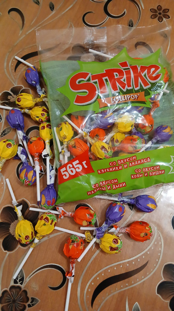 Очень вкусные! Мне особенно понравились фиолетовые (малина и дыня) - ярко выраженый приятный вкус дыни. Оранжевые - клубника и ананас, они с кислинкой, тоже понравились, а желтые со вкусом колы и малины - это вобще вкусняшка, дети расхватали. Причем приятный фруктовый вкус, без "химозности" и без приторной сладости. Заказывали 4 разных вида леденцов Страйк, уже определились те, которые домашним понравились больше всего, будем брать еще.