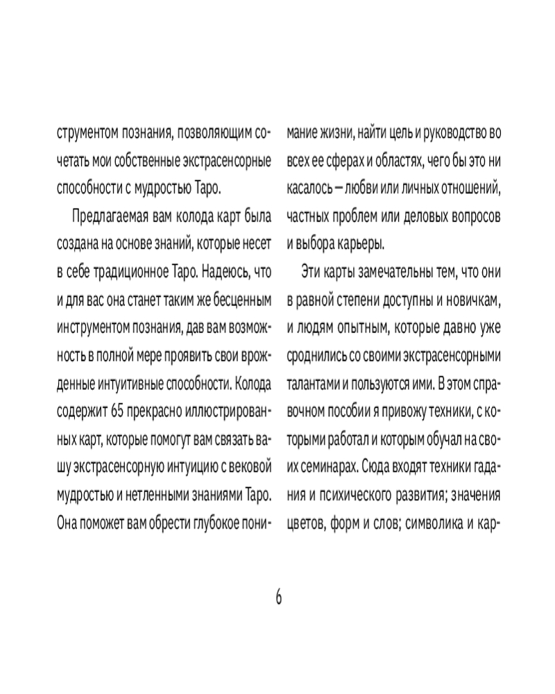 Серия: Карты Таро (Подарочная коробка с картами и книгой) Легендарное «Экстрасенсорное Таро», получившее более 5000 положительных отзывов по всему миру. Карты, которые не только дают ответ на любой вопрос, но и обучают. Чем больше времени вы проводите с этой колодой, тем сильнее развивается ваша интуиция.
