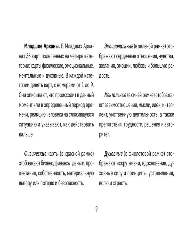 Карты наполнены множеством энергий — разные цвета, символика, сакральная геометрия, числа, энергетические центры. Все это создает уникальную колоду, в которой каждый цвет, каждое слово стоит на своем месте и подобраны так, чтобы усилить ваши врожденные ментальные способности (они у вас точно есть!) Яркие, прекрасно иллюстрированные карты создадут мощный мост между вашими экстрасенсорными способностями и древними знаниями и значениями Таро.