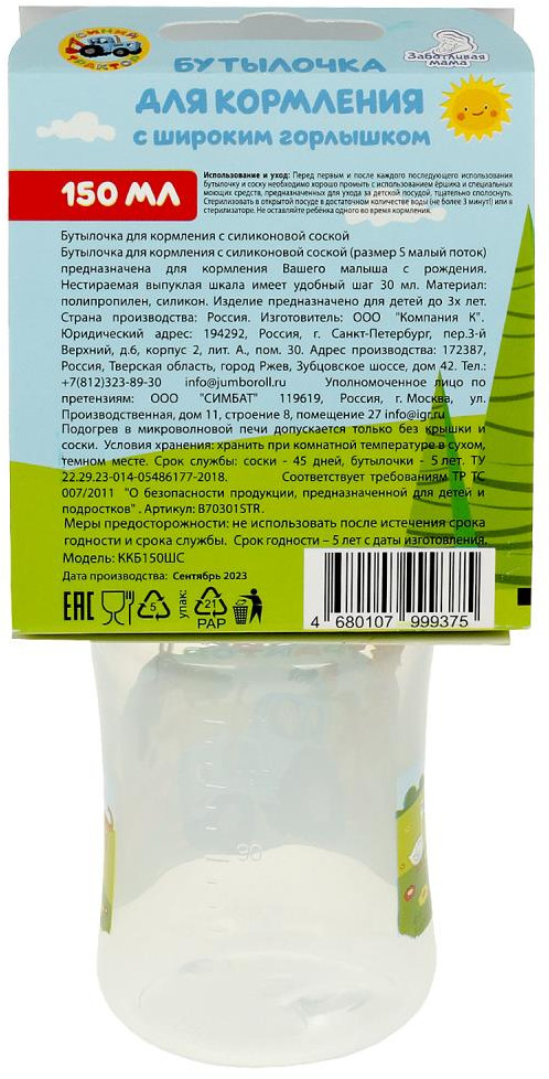 💳 Оплатить за товар можно при получении 🇰🇿 Есть бесплатная доставка по Казахстану от 1 дня 🎁 Копите бонусы с каждой покупки Серия: Синий трактор Бутылочка для кормления «Синий Трактор» ТМ «УМка» станет прекрасным подарком для малыша. Бутылочка оснащена мерной шкалой на корпусе для удобства дозирования смеси. Силиконовая соска безопасна для нежных дёсен малыша и защищает от травм. Благодаря удобному горлышку бутылочку легко мыть, а надёжный колпачок защищает соску от загрязнений. Заботьтесь о ребёнке вместе с ТМ «УМка». |