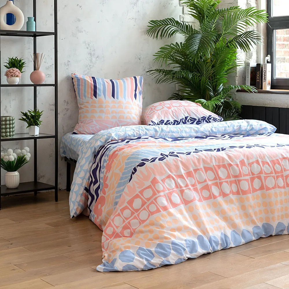 Поплин — мягкий, приятный на ощупь 100% хлопок. Тонкая, но довольно плотная ткань, поплин хорошо сохраняет заданную форму. Если Вы страдаете от высокой чувствительности нежной кожи или аллергии, поплин станет отличным вариантом для Вас. Постельное белье из поплина не вызывает аллергических реакций.