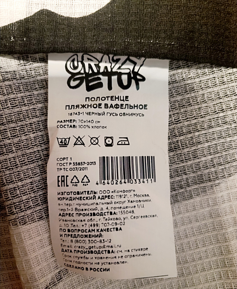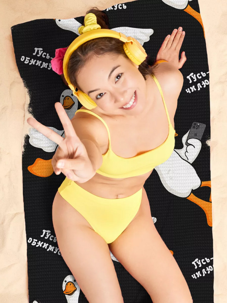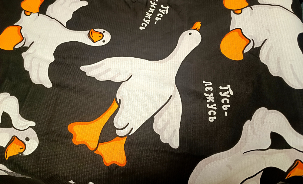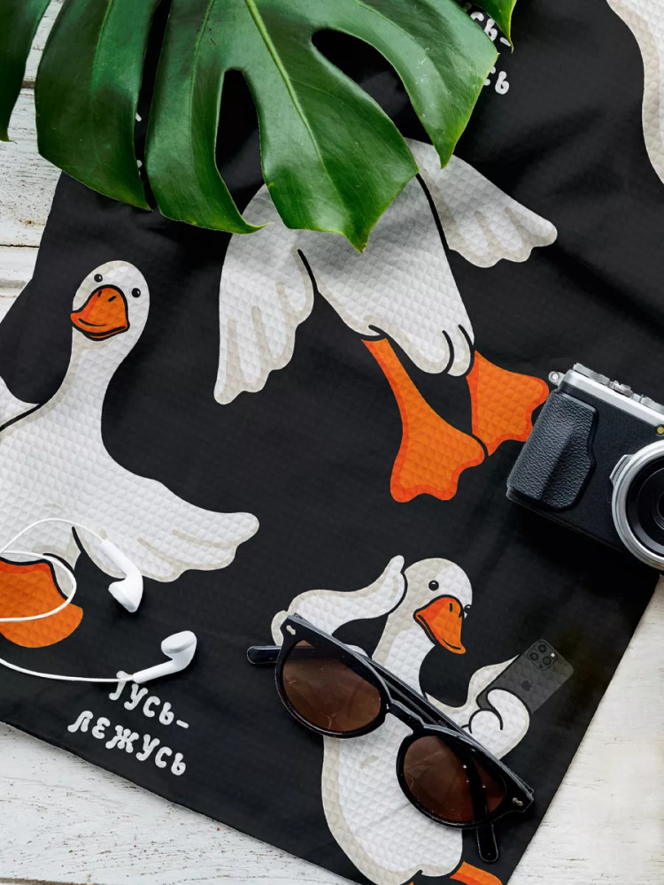 Брала из-за расцветки и размера. Думаю, удобно будет пользоваться на пляже. Правда, тонкое оно. Но качество ткани хорошее и пошив тоже. Размеры 75х141. Видимо, с учётом дальнейшей усадки, пока ещё не стирала. У нас много уже с подобными гусями всяких вещей, сыну очень нравятся.