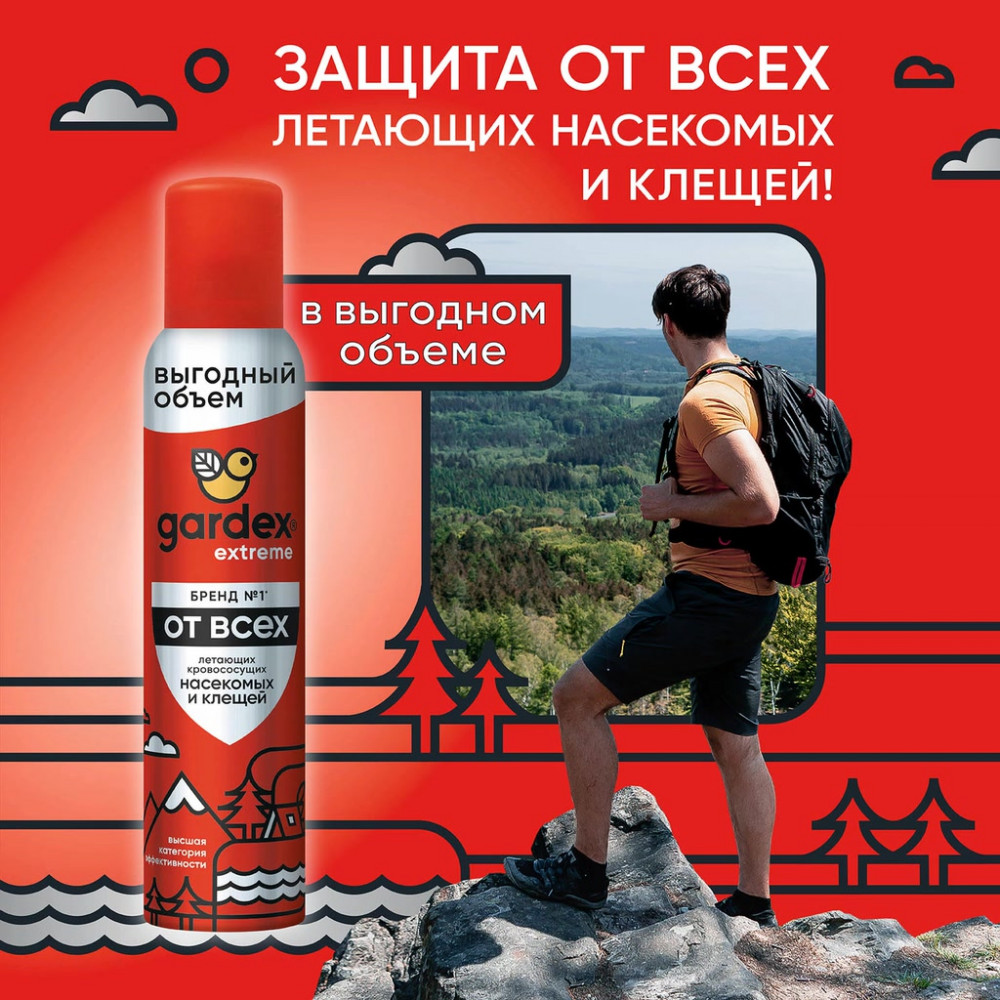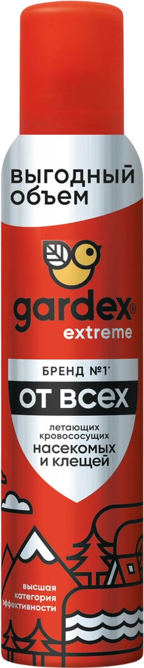 Gardex Аэрозоль-репеллент от всех летающих кровососущих насекомых и клещейВ данный момент этот товар отсутствует в продаже. Возможно, у нас найдется аналогичный или похожий товар здесь. Серия: Extreme Аэрозоль-репеллент от всех летающих кровососущих насекомых и клещей используется для защиты взрослых людей от нападения кровососущих насекомых (комаров, мошек, слепней, мокрецов, москитов, блох) при нанесении на открытые части тела, одежду и другие изделия из ткани, а также таежных и лесных клещей (переносчиков возбудителей клещевого энцефалита и боррелиозов) при нанесении на одежду и другие изделия из ткани. |