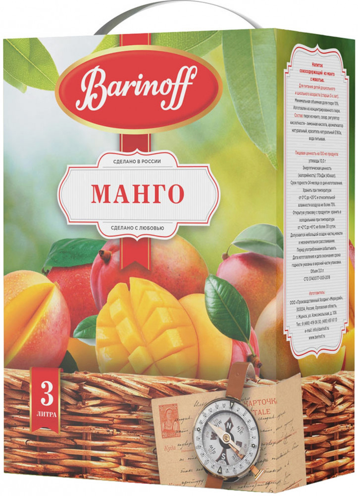 Бренд «Barinoff»: Бренды часто известны своим качеством и заботой о составе своих продуктов. Проверьте, что напиток «Barinoff» соответствует вашим предпочтениям и стандартам. Напиток «Barinoff» с манго может стать приятным и освежающим выбором для тех, кто ценит натуральный вкус манго и желает утолить жажду с пользой для организма.