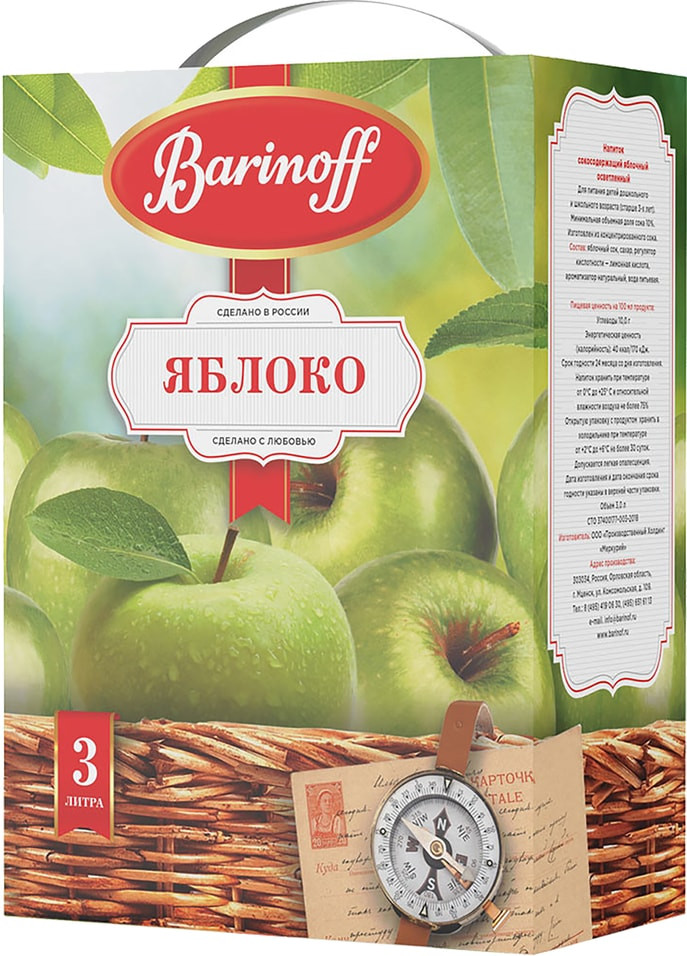 Напиток сокосодержащий яблочный — это натуральный и полезный продукт в асептической упаковке с краном V-топ, который не позволяет проникать воздух внутрь и сохраняет напиток в течение месяца после вскрытия упаковки пригодным для употребления. Большая упаковка — идеальное решение для всей семьи!
