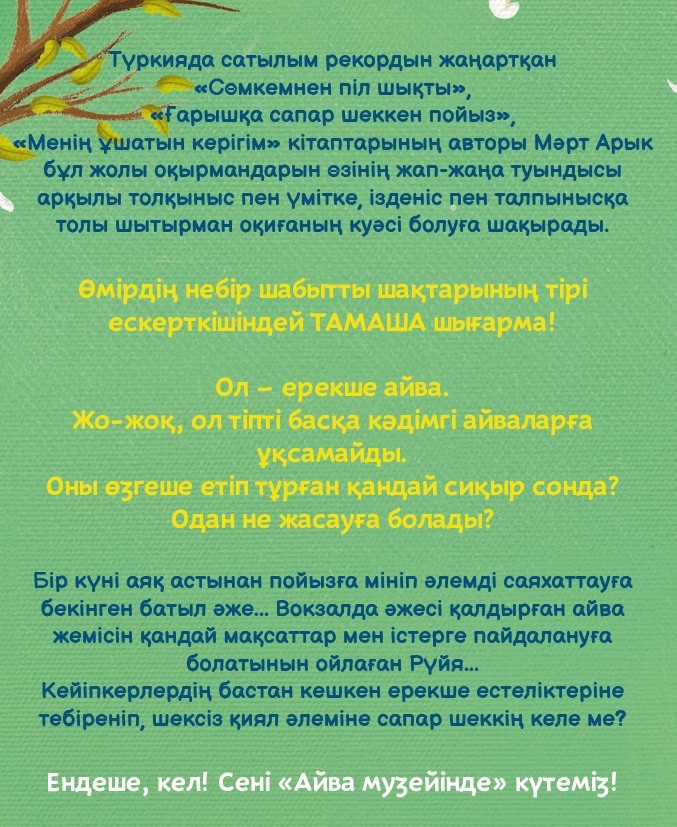 💳 Оплатить за товар можно при получении 🇰🇿 Есть бесплатная доставка по Казахстану 🎁 Копите бонусы с каждой покупки Рүйяның әжесі қайтсе де өз мақсатына жетпей қоймайтын батыл, еңбекқор, өнерлі жан. Ол бір күннің ішінде Сарыкая қалашығын тастап, небір атышулы саяхатшылардың табаны тие қоймаған қияндарды, елді мекендер мен шалғайдағы ауылдарды көруге асығып, пойыз жеткен жердің бәрін шарлауға бел буады. Ұзақ сапарға кетерде немересінің қолына бір айва ұстатып кетеді. Әжесінің жайдан-жай мұндай сыйлық бермейтінін білетін Рүйя оның сырын ұқпақ болып күндіз-түні басы қатады... Балақай, бұл айваның қандай сиқыры бар екенін білгің келсе, бізбен бірге ғажайыпқа толы оқиғаның куәсі бол. |