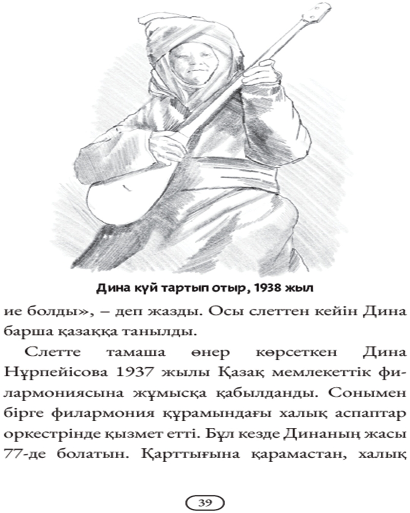 Дина Нұрпейісова кім?низкая цена В данный момент этот товар отсутствует в продаже. Возможно, у нас найдется аналогичный или похожий товар здесь. Серия: Ол кім? Бұл не? «Ол кім?» сериясының кезекті кейіпкері — күй анасы атанған дәулескер күйші Дина Нұрпейісова. Дина тағдырлы тұлға болды. Ол 1916 жылғы ұлт-азаттық көтерілістер, Бірінші және Екінші дүниежүзілік соғысы болған кезеңде өмір сүрді. Аштықты да, жоқшылықты да, ауыр азапты да басынан өткерді. Дина күйші тағдырдың тезіне төзе білді. Тоқсан жасында қазақтың күй өнерінің шыңына шықты. Ұстазы Құрманғазының, өзінің күйлерін халық арасына жайды. Бұл жинақта Динаның басынан өткерген бүкіл қиын да қызықты сәттері баяндалады. |