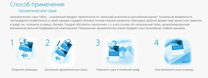 Мне нравится, купила все 4 запаха и развесила по всей квартире, в туалете и шкафу особенно хорошо действует (в маленьком помещении запах насыщенней), и еще плюс: ожидала, что это будут малюсенькие пакетики, а оказались довольно большие: 10*15 см!