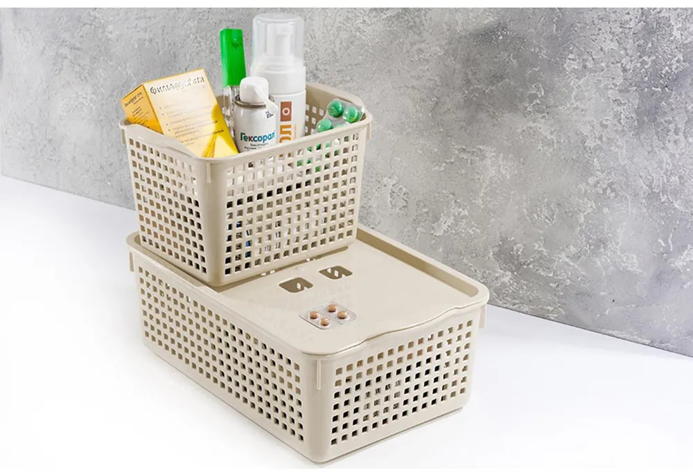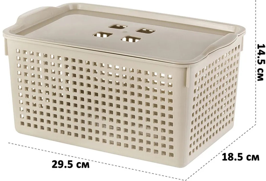 Набор состоит из трех корзин с крышками серии «Лофт» объемом 5,3 литра каждая. Такие корзинки можно использовать для хранения бытовой химии, инструментов, игрушек и самых разных вещей. Пригодятся на кухне, в ванной комнате или в гараже. Корзины выполнены из качественного прочного пластика и полностью безопасны для здоровья. Поверхность корзинок украшена декоративным рельефным узором с отверстиями для вентиляции. Такие корзинки можно использовать даже для хранения продуктов! По бокам корзинок имеются удобные ручки. Размер каждого изделия 29,5 × 18,5 × 14,5 см. Благодаря привлекательному внешнему виду подойдут для организации хранения на открытых полках. Корзины из серии «Лофт» помогут организовать хранение в едином стиле и эффективно использовать пространство!