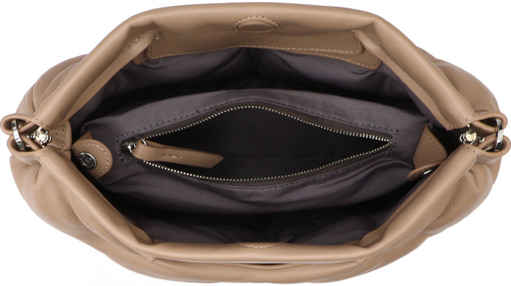 Сумка симпатичная, достаточно вместительная, кожа мягкая. На этом её достоинства и заканчиваются.Недостатки: нет отделения для телефона, внутри небольшой кармашек, который крепится кнопками к сумке. Что туда можно вкладывать, непонятно (маленький).Клапаны под замком открытые. Вся внутренность сумки видна, рука пролезет. Некрасиво. Да и для желающих пошарить в сумке доступ свободен.
