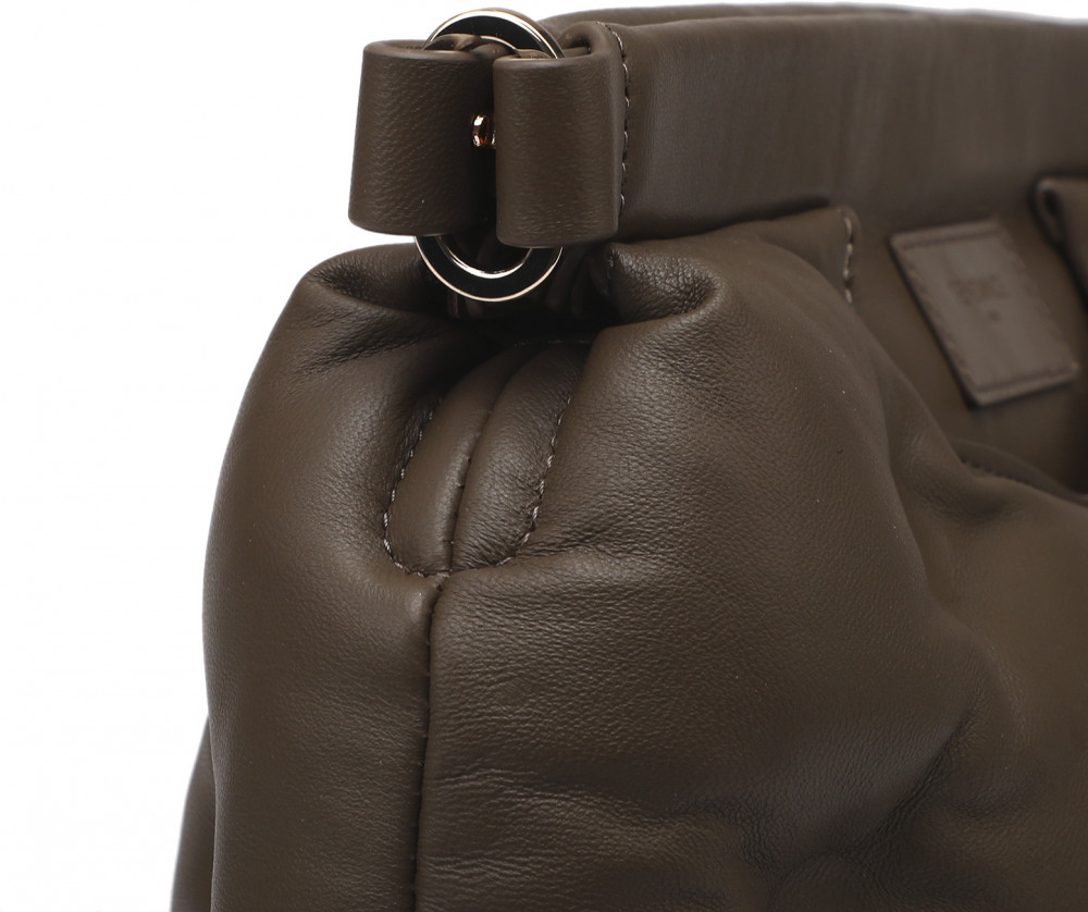 Сумка симпатичная, достаточно вместительная, кожа мягкая. На этом её достоинства и заканчиваются.Недостатки: нет отделения для телефона, внутри небольшой кармашек, который крепится кнопками к сумке. Что туда можно вкладывать, непонятно (маленький).Клапаны под замком открытые. Вся внутренность сумки видна, рука пролезет. Некрасиво. Да и для желающих пошарить в сумке доступ свободен.
