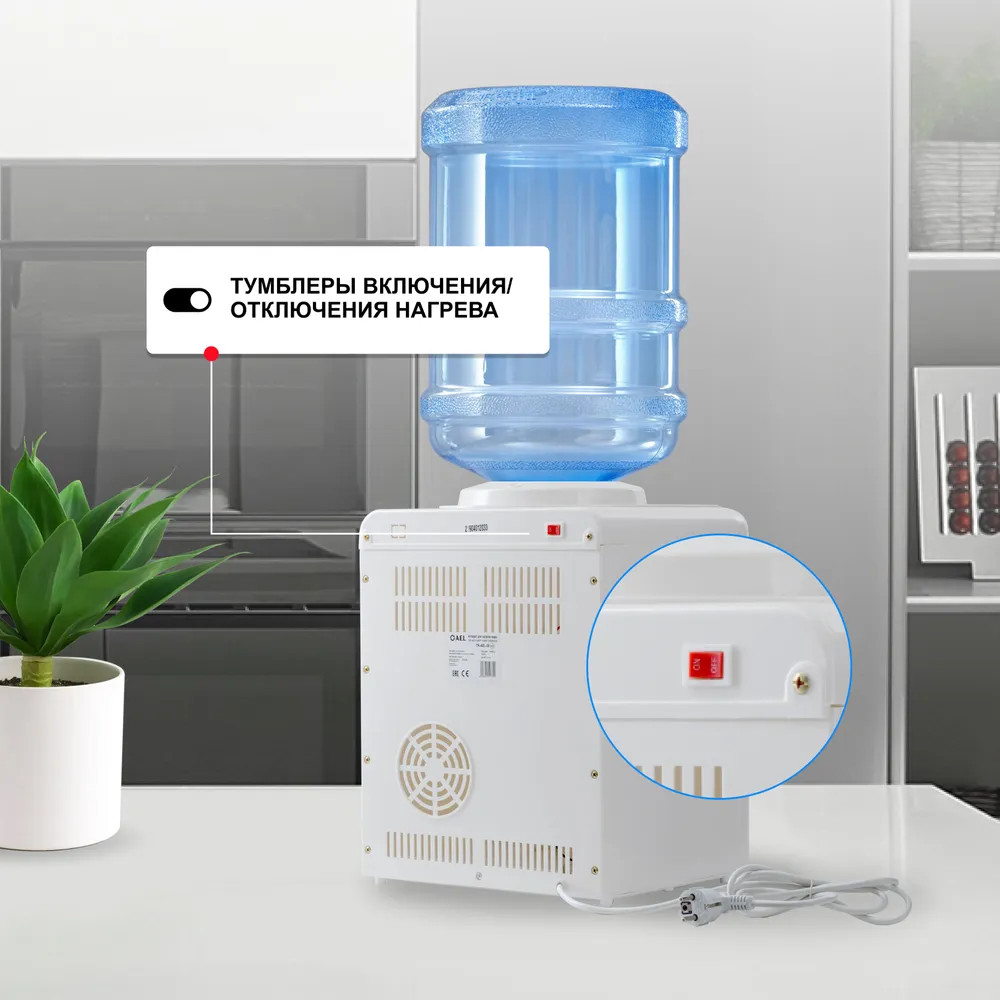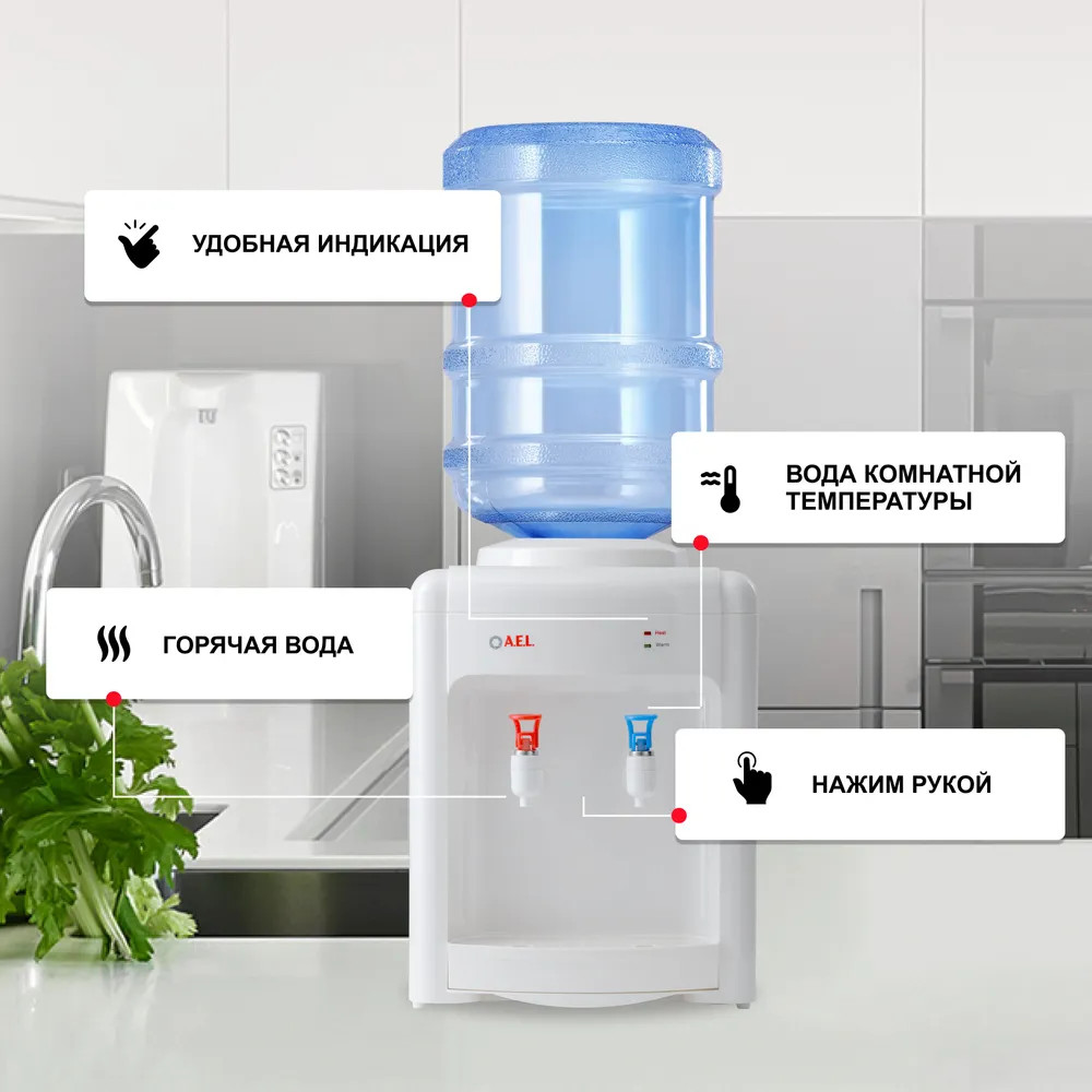 A.E.L Кулер для воды TD 36В данный момент этот товар отсутствует в продаже. Возможно, у нас найдется аналогичный или похожий товар здесь. Классическая модель настольного кулера с электронной системой охлаждения. На лицевой панели расположен индикатор работы аппарата, который показывает процессы нагрева или охлаждения воды. Оснащен двумя кранами с системой налива «нажим рукой». Небольшие размеры устройства позволяют разместить его в любом удобном месте. Кулер хорошо впишется в интерьер дома и офиса. Неразборный бак нагрева. |