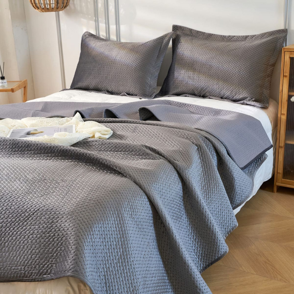 Изготовленное из высококачественного полиэстера покрывало имеет очень мягкую и приятную велюровую текстуру, благодаря чему будет приятно коже. Плед на кровать с геометрической стежкой — вечная классика, которая будет уместна в любой спальне или комнате подростка. Он будет красиво смотреться на кровати, на диване, на угловом диване, создавая уют и комфорт. Кроме того, плед с наволочкой прочный и износостойкий, что делает его отличным выбором для повседневного использования.