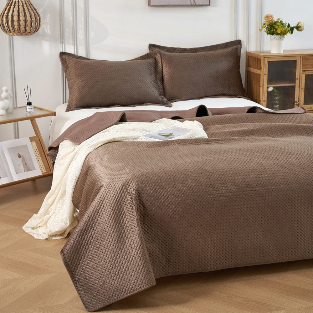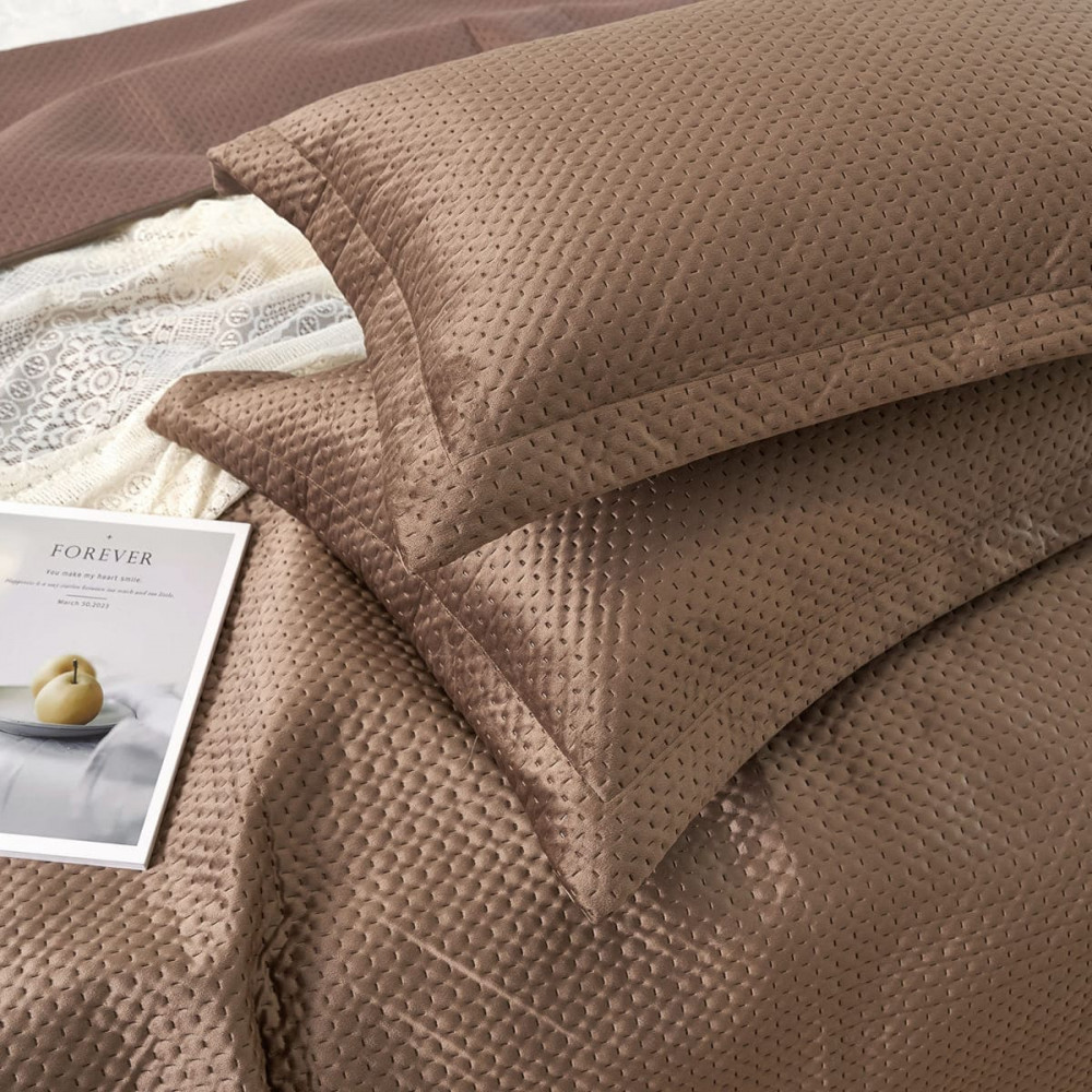 Изготовленное из высококачественного полиэстера покрывало имеет очень мягкую и приятную велюровую текстуру, благодаря чему будет приятно коже. Плед на кровать с геометрической стежкой — вечная классика, которая будет уместна в любой спальне или комнате подростка. Он будет красиво смотреться на кровати, на диване, на угловом диване, создавая уют и комфорт. Кроме того, плед с наволочкой прочный и износостойкий, что делает его отличным выбором для повседневного использования.