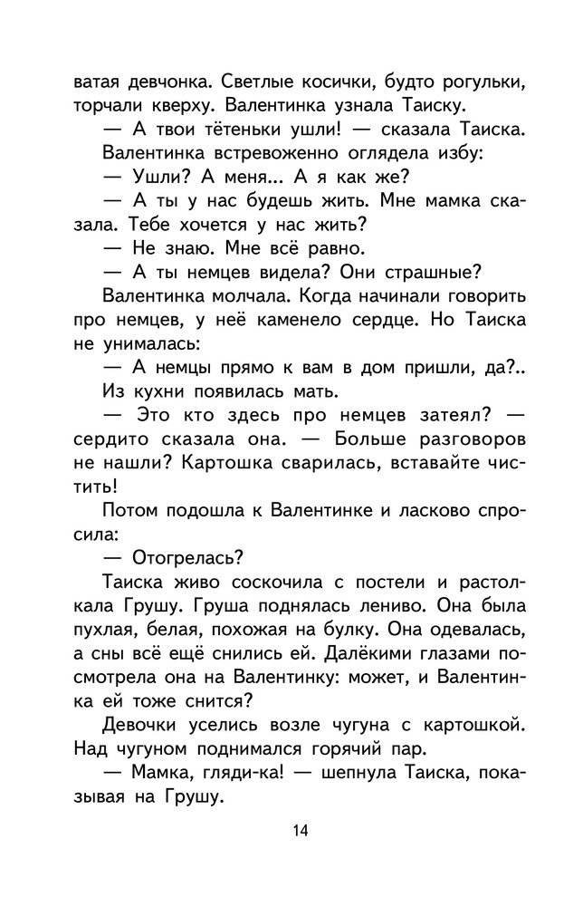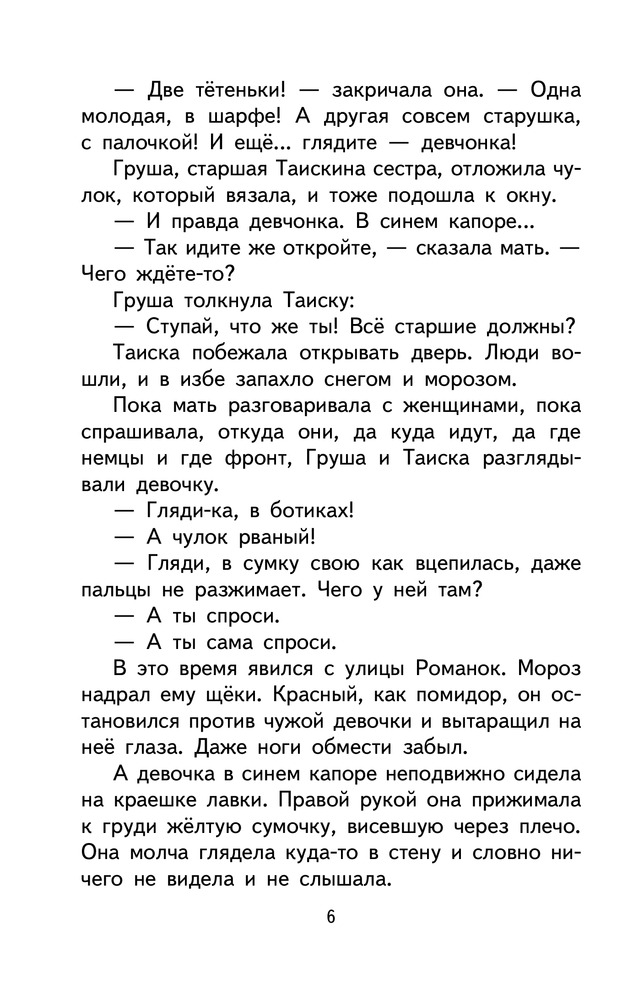 Читала детям вслух и не могла сдержать слез. Действительно, глубокая и полезная книга, не только с точки зрения истории "детей войны", но и взаимоотношения внутри семьи сестёр. Некоторые ситуации описаны так и естественно и показательно, что позволяет деткам посмотреть, как бы, на себя со стороны в отношениях с ровесниками, сёстрами или братьями. По крайней мере, нам с детьми было, что обсудить после каждой главы.