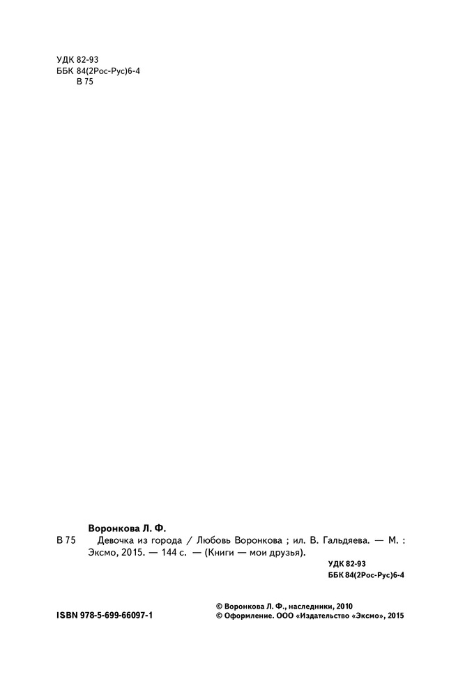 Девочка из городаВ данный момент этот товар отсутствует в продаже. Возможно, у нас найдется аналогичный или похожий товар здесь. Серия: Книги - мои друзья Повесть Л.Ф.Воронковой "Девочка из города" была написана во время войны. |