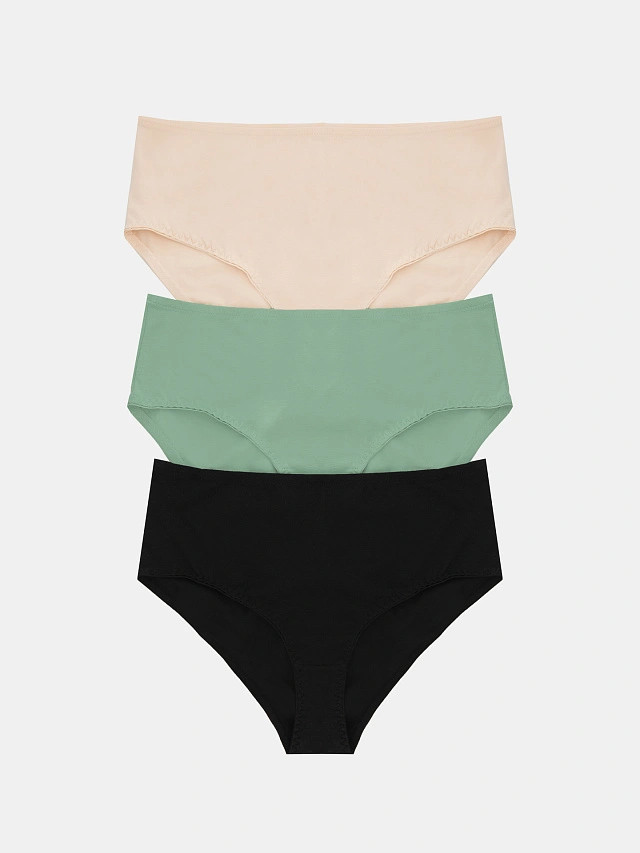 Комфортные женские трусики из трикотажного полотна до линии талии с широким бочком. Трусики продаются мультипаком по три единицы — это удобно, выгодно и практично. Высокая посадка по талии, широкие боковые части и полностью закрытые ягодицы — залог комфортной посадки на фигуре. Отлично подойдут дамам с пышными формами! Натуральный материал высочайшего качества: мягкий, дышащий, гипоаллергенный и долговечный, сохраняет вид даже после многочисленных стирок и обеспечивает чувство полного комфорта на протяжении всего дня. благодаря продуманной анатомичной конструкции, плоским швам и деликатным резиночкам, отлично подходят для повседневной носки и занятий спортом. Пригодятся они и будущим мамам: в этой модели ничего не давит, а значит абсолютно безопасно и комфортно для растущего животика.