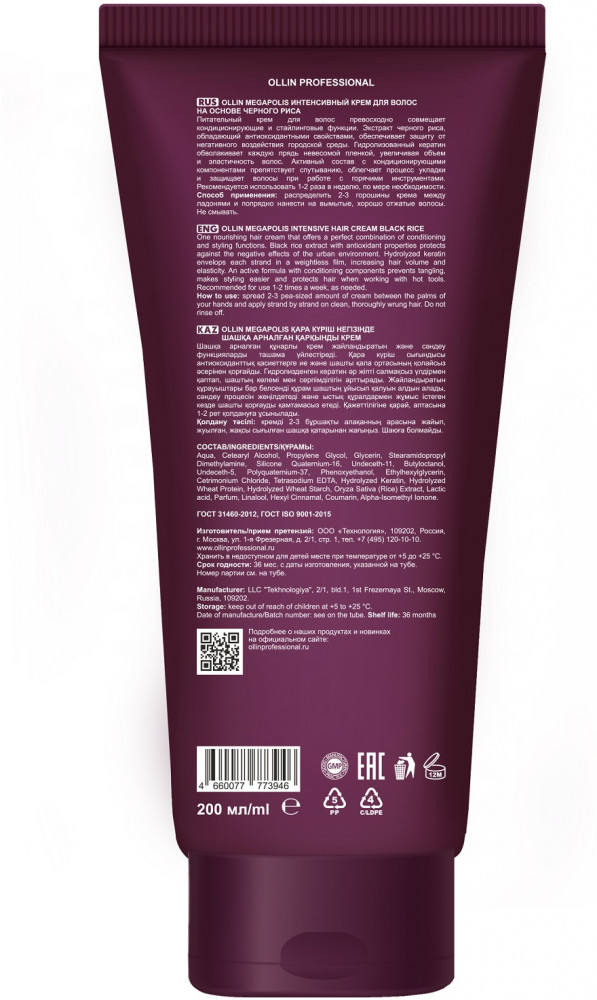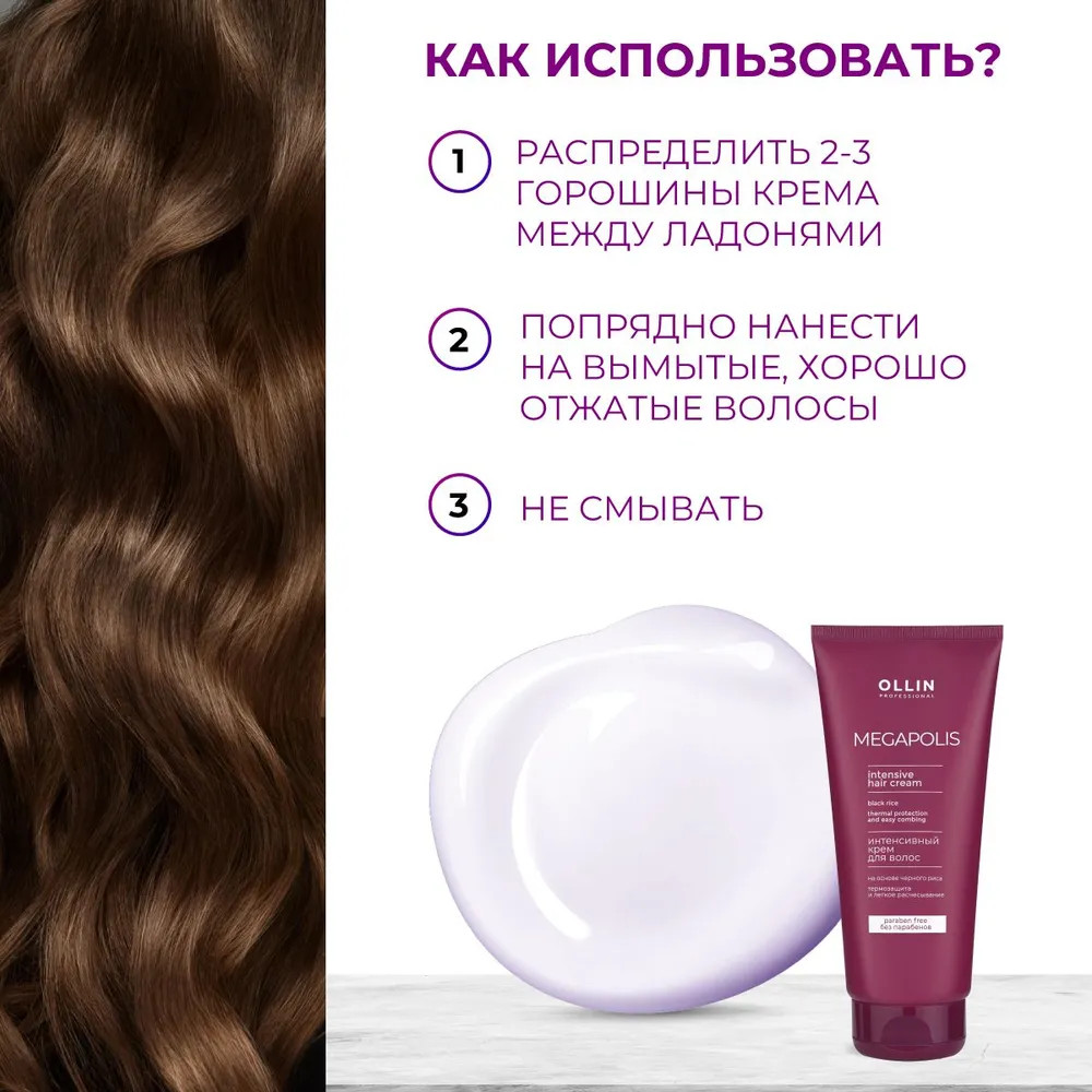 Ollin Professional Крем для волос интенсивный на основе черного риса-20% +44
